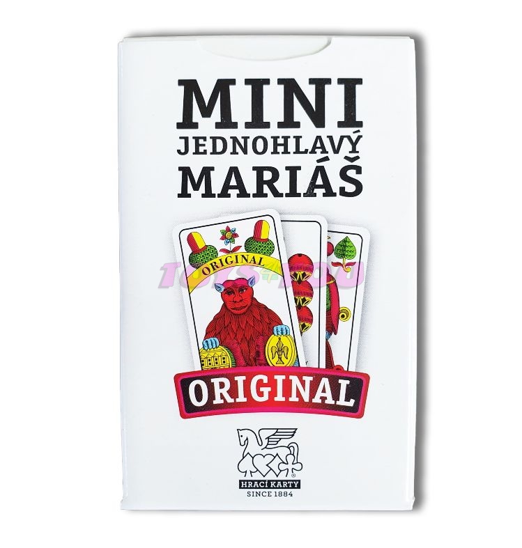 Mariáš 1651 jednohlavý koník mini - hrací karty - … naše hra vychází z tradičního karetního vzoru ve světě známého jako „pražský typ“. Tváří této hry je již 200 let žaludské eso s medvědem držícím dvě mince. Velikost karty je praktická pro hraní na cestách nebo pro vykládání. No.1651, revers koník, krabička papír počet 32 listů formát karet 44/68 mm papír Casino Classic 310 g/m2 baleno v papírové krabičce EAN 859 55917 0005-4