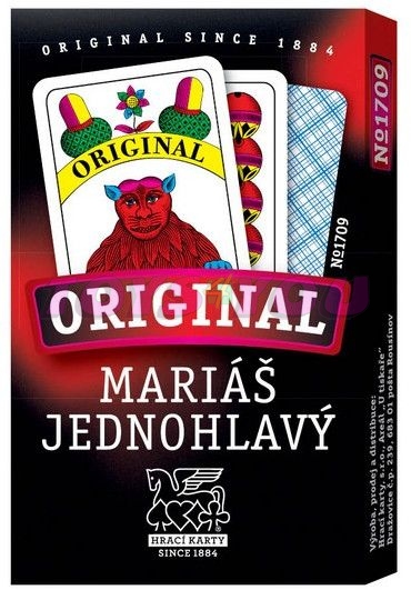 Mariáš jednohlavý 1709 káro - hrací karty - …naše hra vychází z tradičního karetního vzoru ve světě známého jako „pražský typ“. Tváří této hry je již 200 let žaludské eso s medvědem držícím dvě mince. Károvaný revers je typický pro tuto hru. Mezi hráči je velmi oblíbený pro svoji praktičnost. No.1709, revers káro, krabička papír počet 32 listů formát karet 62/104 mm papír Casino Classic 310 g/m2 baleno v papírové krabičce