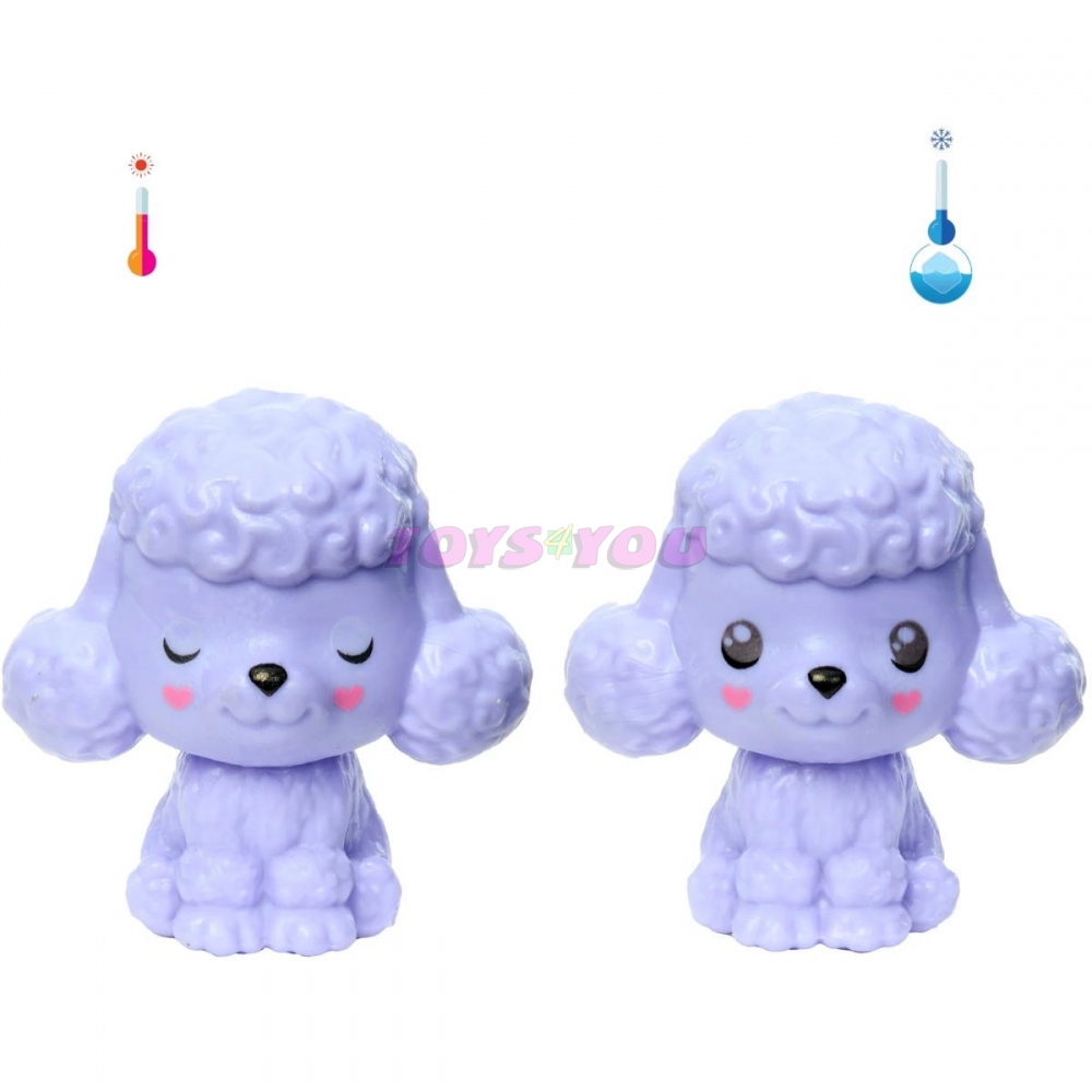 Panenky Barbie® Cutie Reveal™ Cozy Cute Tees™ Series Chelsea™ nabízejí ten nejroztomilejší zážitek z rozbalování se šesti překvapeními! Objevte rozkošné štěně pudla s našitým tričkem. Odstraňte plyšový kostým a odhalte panenku Chelsea™. Kterou panenku odhalíte? Buďte útulnější s dalšími překvapeními, jako je saténová sukně a mini zvířátko, které ladí s kostýmem panenky. Přehoďte plyšový vršek do příliš velké bundy a hlavu kostýmu do pelíšku pro domácí mazlíčky. Ledově studená voda dodává malému mazlíčkovi ještě více roztomilosti s transformací změny barvy; teplá voda ji vymění zpět pro opakovanou zábavu! Děti budou milovat objevování všech překvapení v této útulné roztomilé sérii Barbie® Cutie Reveal™. Obsahuje panenku ve zvířecím kostýmu a šest překvapení. Každá panenka se prodává samostatně, podle dostupnosti. Panenky nemohou stát samy. Barvy a dekorace se mohou lišit. Se 6 překvapeními v 1 balení poskytují panenky Barbie® Cutie Reveal™ Chelsea™ ten nejroztomilejší zážitek z rozbalování s plyšovými zvířecími kamarády Cozy Cute Tees™ Series, módou a proměňující zábavou! Rozbalte a najděte plyšové štěně pudla, které má na sobě šité tričko s panenkou Chelsea™ uvnitř. Zvedněte hlavu kostýmu a odhalte malou panenku Chelsea™ s dlouhými, modře melírovanými brunetovými vlasy a třpytivými detaily ve tvaru obličeje. Otevřete 3 sáčky s překvapením a najděte módu a doplňky - jako je saténová sukně, pár bot a rozkošný ladící mini pudlík. Děti mohou oblékat a upravovat panenku Cutie Chelsea™ přehozením horního dílu kostýmu a najít super měkkou, příliš velkou fleecovou bundu s roztomilým módním potiskem. Hlava kostýmu se promění v postel i pro malého mazlíčka! Použijte ledovou vodu k "otevření" a "zavření" očí mini pudla - vyměňte je za teplou vodu. Opakujte znovu a znovu! Panenky Chelsea™ Cutie Reveal™ Cozy Cute Tees™ Series jsou skvělým dárkem pro děti od 3 do 7 let, zvláště pro ty, které milují objevování roztomilých překvapení! Věk: 3+