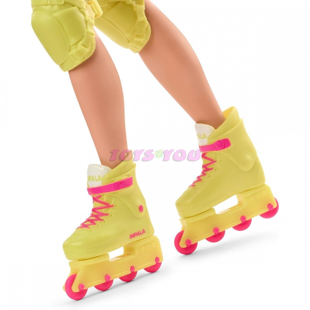 Sběratelská panenka Ken HRF28 pro celovečerní film Barbie s oblečením pro inline brusle v retro vzhledu a inline bruslemi. Pozdravy ze světa Barbie! Tato sběratelská panenka Ken je rozený kolečkový bruslař a má na sobě retro oblečení jako v celovečerním filmu Barbie. Neonově růžové tričko je kombinováno s odpovídajícími chrániči kolen, sluneční clonou a neonově zbarvenými inline bruslemi Impala. Tato panenka, inspirovaná Kenovým vzhledem z celovečerního filmu Barbie, je skvělým dárkem pro fanoušky a sběratele! Panenka nemůže stát sama. Odchylky v barvě a designu vyhrazeny. S touto sběratelskou panenkou Ken si každý může přinést celovečerní film Barbie do svého domova! Má na sobě sportovní neonový outfit, který znovu vytváří jeho ikonický bruslařský vzhled z celovečerního filmu. Panenka Ken ve svém nápadném vzhledu vypadá, jako by sjela přímo z obrazovky. Svým neonově růžovým tričkem dokonale napodobuje nezaměnitelný styl Barbie. Bunda bez rukávů, sportovní šortky a odpovídající sluneční clona mají jasný retro vzor. Na svých inline bruslích Impala je nezastavitelný! Odpovídající neonově zelené potítka, chrániče kolen a taška na opasek dotvářejí jeho bruslařský vzhled. Tato pohyblivá panenka je dodávána v balení inspirovaném hraným filmem Barbie, takže je ideální pro sběratelství. Celá kolekce obsahuje ještě více fantastických nápadů na dárky! Všechny položky se prodávají samostatně. Věk: 3+