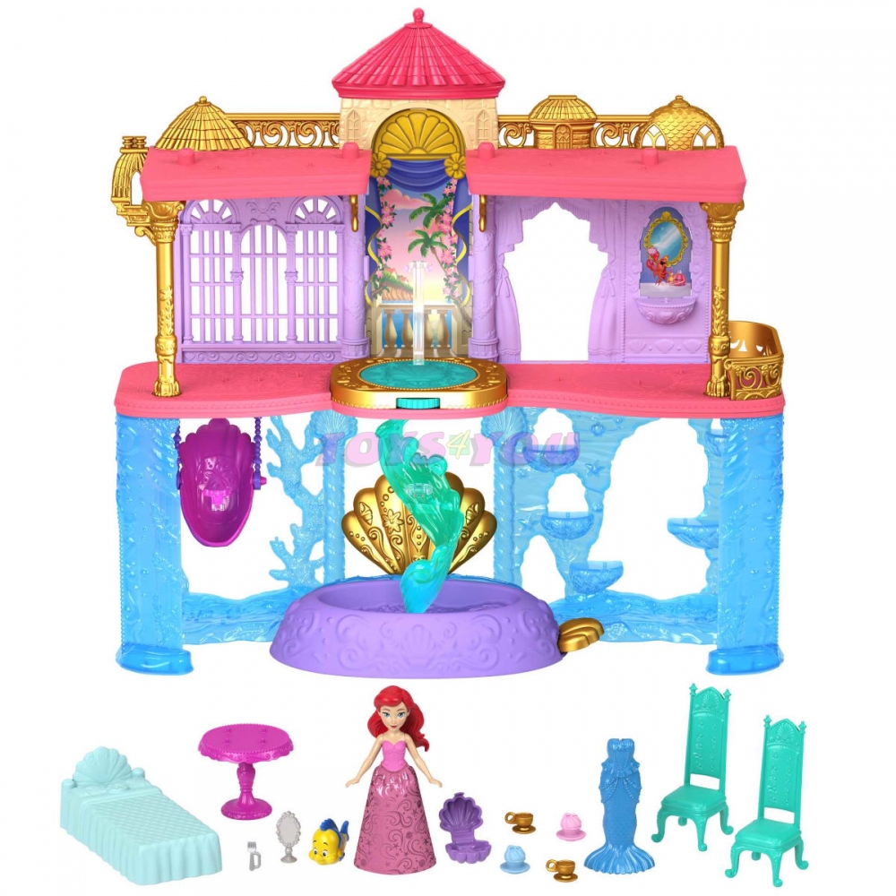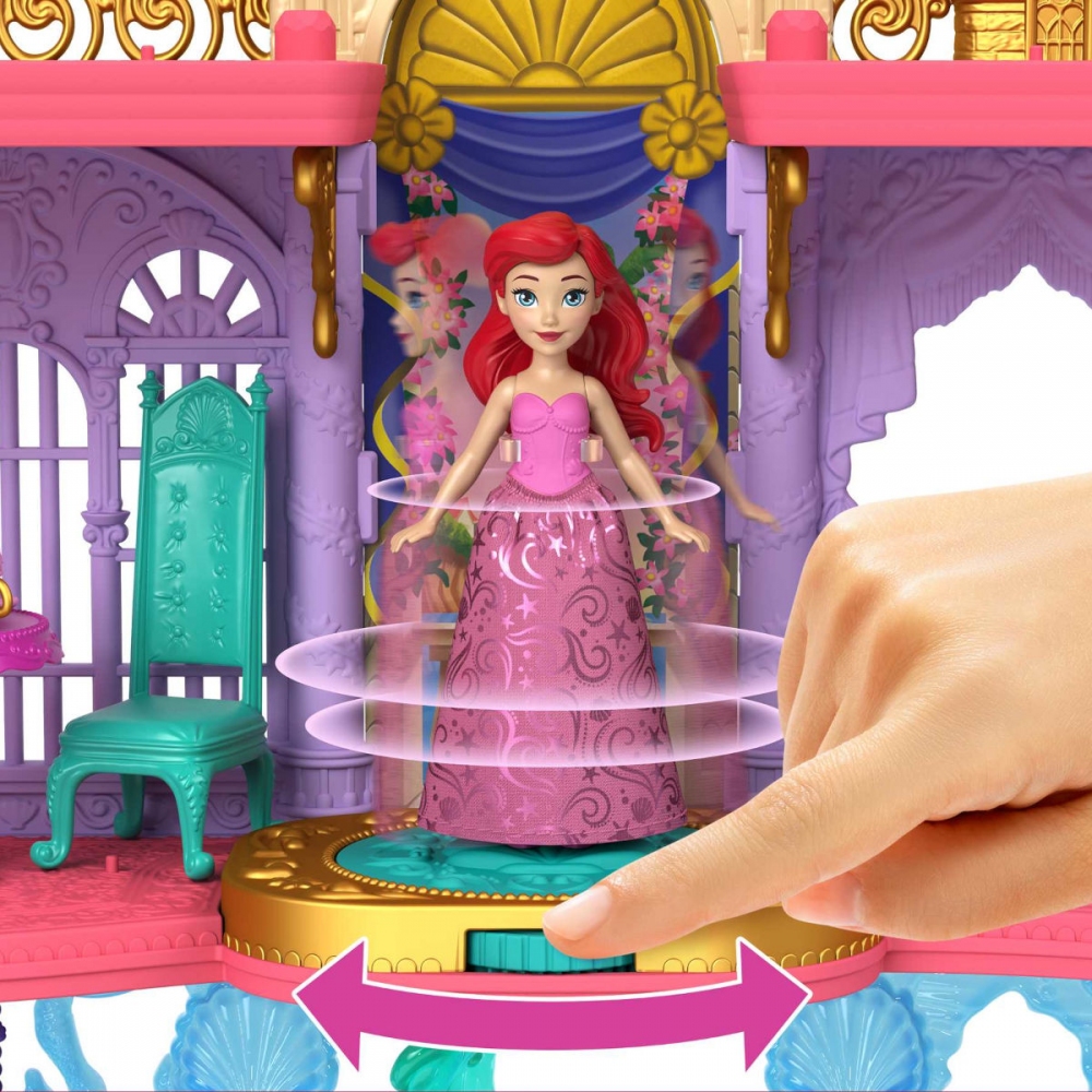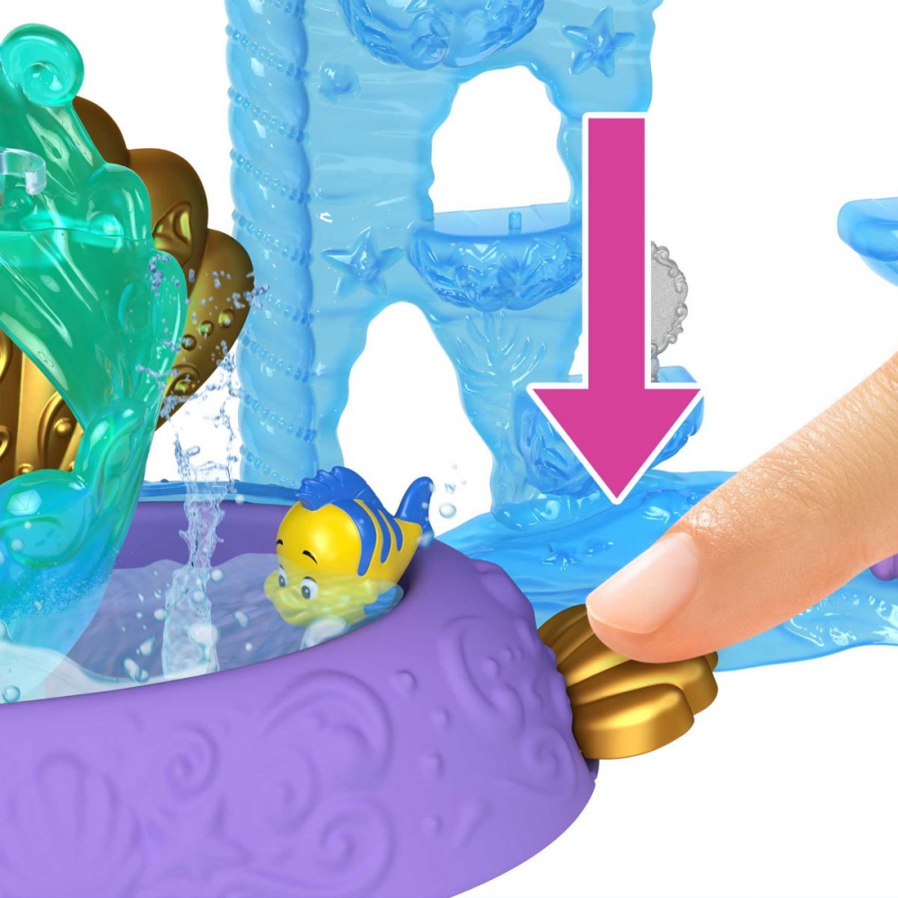 Arielino království země a moře potěší fanoušky v této herní sadě inspirované Disneyho Malou mořskou vílou! Stohovatelný domeček pro panenky v půvabném malém měřítku, vršek hradu Ariel je svět nad vodou a spodek je svět pod vlnami. Dodává se s nábytkem, hracími dílky, figurkou Floundera a panenkou Ariel se 2 způsoby. Panenka nemůže stát sama. Barvy a dekorace se mohou lišit. Tato hradní herní sada, inspirovaná animovanou klasikou od Disneyho Malá mořská víla, umožňuje dětem přehrát filmové momenty z obou Arielových království: země i moře! Hrací sada je vysoká 31,1 cm a obsahuje 6 herních oblastí, které děti znají z filmu, a navíc Arielina rozkošného kamaráda Floundera. Království panenky Ariel zahrnuje otáčející se taneční parket pro zámecké oslavy, stejně jako Arielinu ložnici a jídelnu s mnoha hracími figurkami inspirovanými jídlem. Podmořské království panenky Ariel má bazén, kde děti mohou stisknutím tlačítka rozstříknout vodu. Zahrnuje také houpačku z mušle a fontánu, na kterou mohou Ariel a platýs připnout pro zábavu při točení. Děti si mohou vzít malou panenku Ariel (3,5 palce) z mořské panny na člověka se dvěma způsoby: její růžová zámecká móda a obleček mořské panny, který se po ponoření do vody změní z fialové na modrou. Více herních sad Storytime Stackers™ lze naskládat na sebe nebo je propojit vedle sebe. Fanoušci mohou sbírat všechny sady Disney Princess a budovat ultimátní království! Každá sada se prodává samostatně, v závislosti na dostupnosti. Hračka je vhodná pro děti od 3 let.