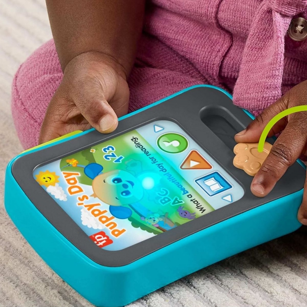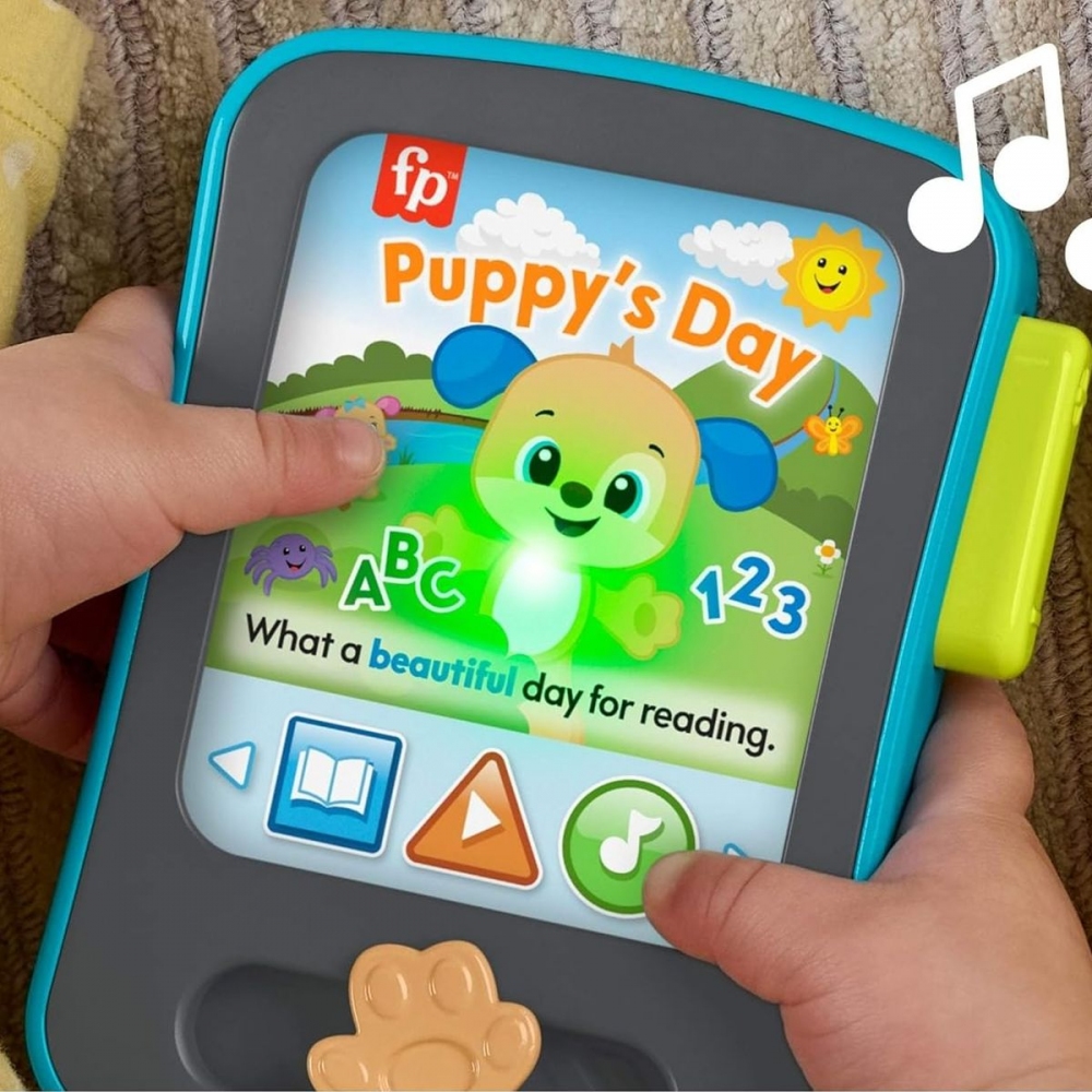 Miminko se může schoulit do choulek se svými oblíbenými příběhy s touto elektronickou čtečkou od Fisher-Price. Čtečka pohádek Laugh & Learn Puppy’s Storytime Reader, stylizovaná stejně jako verze pro dospělé, má 3 tlačítka, která aktivují světla, písničky a zvuky a navíc zábavné aktivity k prozkoumání. Díky více než 20 písničkám a zvukům, včetně klasických dětských říkanek, se Čtečka pohádek Puppy’s Storytime Reader jistě stane dalším oblíbeným „čtením“ vašeho dítěte! Barvy a dekorace se mohou lišit. Elektronická čtečka pohádek se světly, vzdělávacími písničkami a klasickými dětskými říkankami pro kojence a batolata. 3 tlačítka aktivují více než 20 dětských říkanek, písniček a zvuků, které seznamují s tvary, barvami, protiklady a čísly. Vícebarevná světla pomáhají učit barvy, zatímco si děti hrají. Praktické aktivity: tlačítko „hlasitost“, pískadlo a posuvník. Pomáhá rozvíjet jemnou motoriku a seznamuje miminka a batolata ve věku od 6 měsíců do 3 let s pojmem příčina a následek. Věk 6+ měsíců.