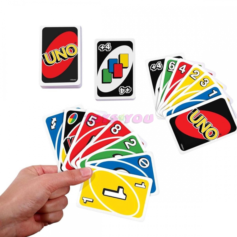 Klasická karetní hra vhodná ke zkrácení dlouhé chvíle a rychlému pobavení se s rodinou či přáteli. UNO je karetní hrou bystřící postřeh a soustředění. Je rychlá a zábavná. Principem hry je přebíjení karet dle barvy a čísla. Vítězem se stává ten, kdo se zbaví všech svých karet a nezapomene vyslovit UNO! Hra je vhodná pro 2 - 10 hráčů. Věk: 7+