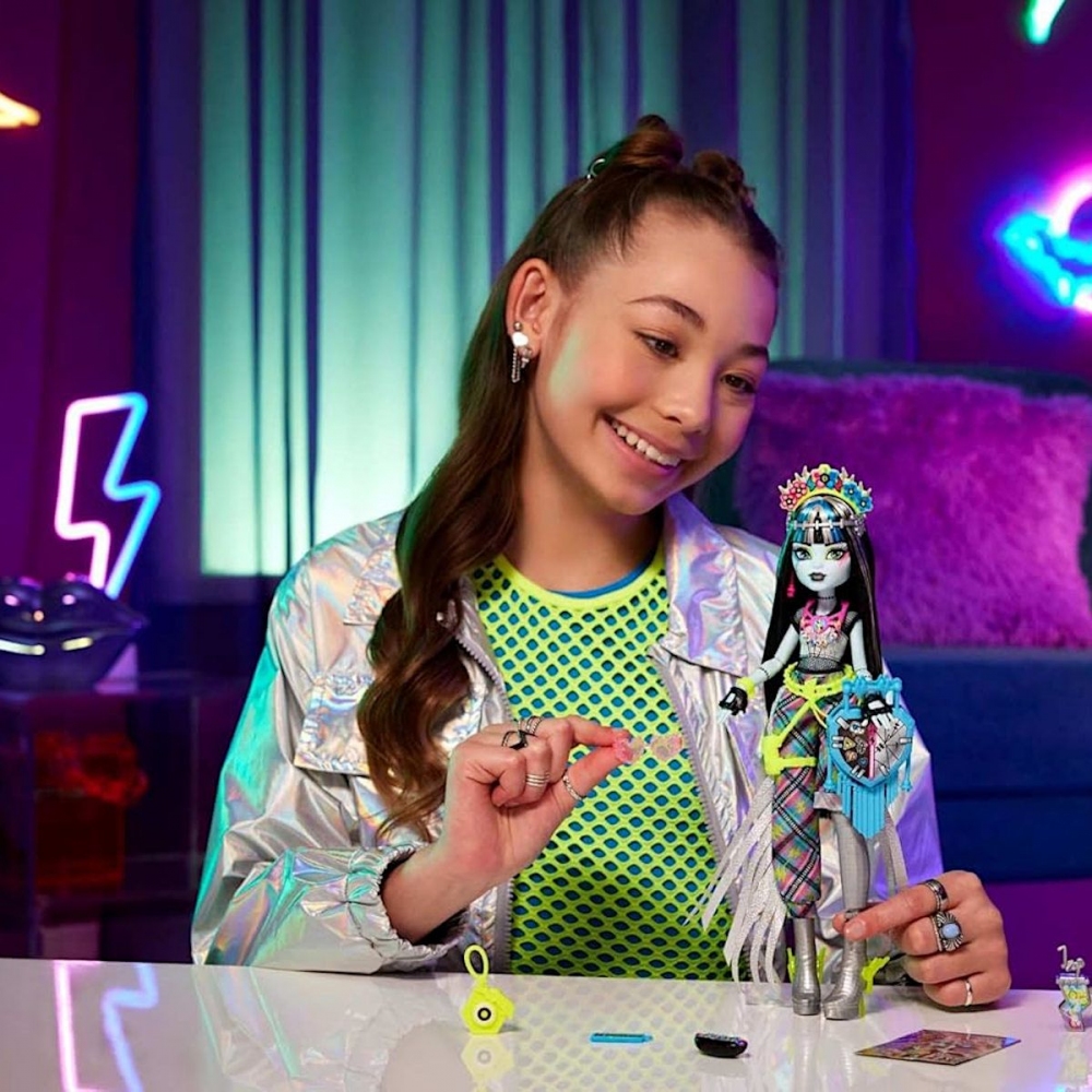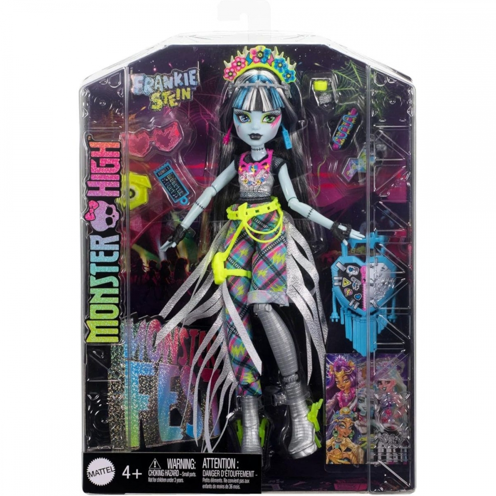 Panenka Monster High Frankie Stein získala vstupenku na Monster Fest, nejlepší hudební festival vůbec! S vybledlým číháním a napínavými doplňky se nemohou dočkat, až budou jíst, tančit a být děsiví!