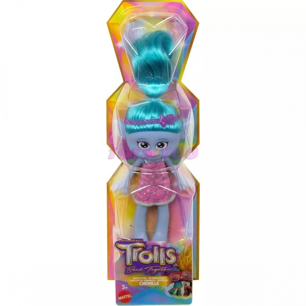 Fanoušci filmu DreamWorks Trolls Band Together mohou vytvářet své vlastní zábavné příběhy s těmito panenkami inspirovanými oblíbenými postavami z filmu. Panenky mají odnímatelné oblečení, pestrobarevné vlasy a vlasové doplňky, které inspirují ke kreativní hře. Děti je mohou všechny posbírat, aby si znovu vytvořily své oblíbené momenty z filmu! Každá panenka se prodává samostatně, podle dostupnosti. Panenky se nemohou samy postavit. Barvy a provedení se mohou lišit. Tato kolekce panenek, inspirovaná fanoušky oblíbenými postavami z filmu DreamWorks Trolls Band Together, inspiruje děti k vytváření zábavných příběhů! Každá panenka má zářivě zbarvené vlasy, které si děti mohou upravit a ozdobit vlasovým doplňkem! Jejich oblečení je odstraněno pro další módní hru! Jsou to perfektní dárky pro fanoušky Trollů.