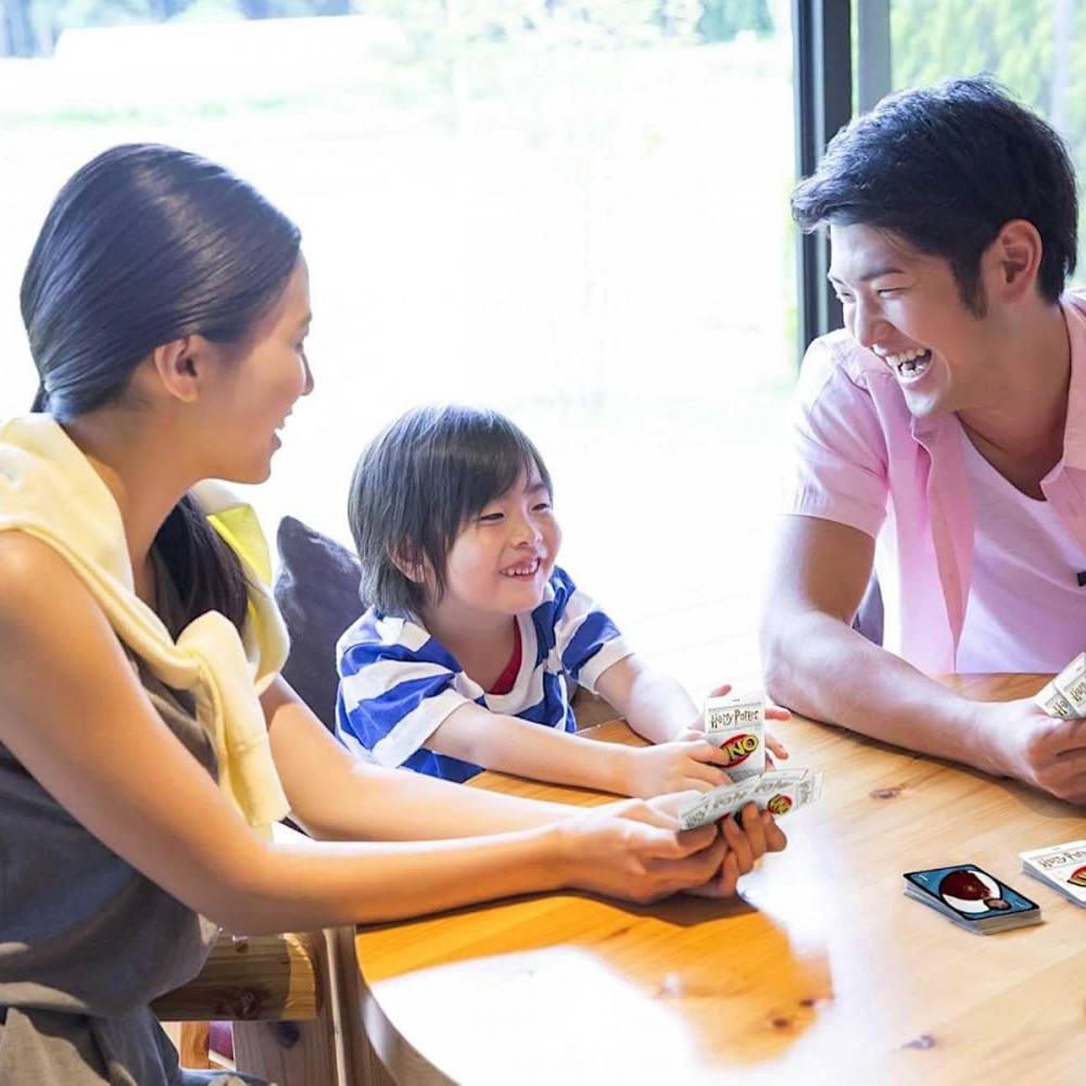 Připojte se k Harrymu, Hermioně, Ronovi, profesoru Brumbálovi a dalším oblíbeným postavám z Bradavic a užijte si večer ve společnosti oblíbené karetní hry UNO™. Hráči se snaží co nejrychleji zbavit všech svých karet tím, že umístí kartu stejné barvy nebo hodnoty na vrchní kartu odkládacího balíčku. Snažte se jako první zbavit všech svých karet a získat tak body. Hru ozvláštňují speciální akční karty, které mohou během okamžiku změnit průběh hry. V této verzi na vás čeká nová speciální karta Moudrý klobouk! Jakmile zahrajete tuto kartu, vyberte hráče, který si musí brát karty, dokud nenajde kartu Nebelvíru! Vítězem se stává hráč nebo tým hráčů, který jako první získá 500 bodů. Až budete mít v ruce poslední kartu, nezapomeňte zakřičet „UNO“! Věk 7+
