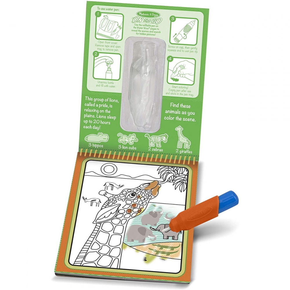 Kouzlení vodou SAFARI - Čisté malování! Tyto "vodní" omalovánky obsahují čtyři znovupoužitelné stránky a znovuplnitelné vodní pero. Použijte vodní pero, jehož tahy se zobrazí živé barvy na jednotlivých obrázcích. Potom nechte stránku usušit a obrázek opět zmizí a znovu po navlhčení objeví. Vodní pero se snadno drží a vkládá se do úložné schránky na přední straně omalovánky, což činí Water WOW pratickou omalovánkou i pro cestování. Balení obsahuje: 4 znovupoužitelné obrázkové plochy z tvrdého kartonu a speciální pero, které se znovu doplňuje vodou. Rozměr balení: 25 x 15 x 1 cm. Věk: 3+