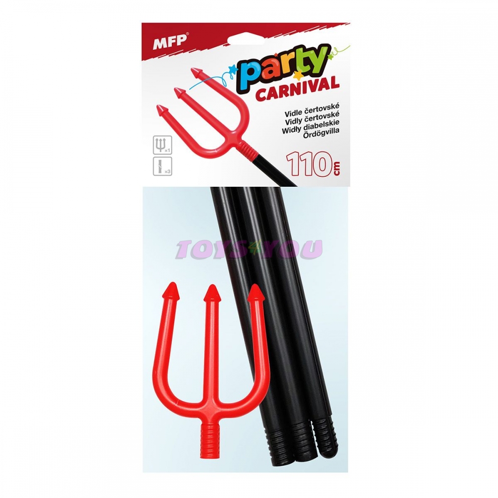Skládací čertovské vidle v černo-červeném provedení jsou nezbytným doplňkem ke kostýmu čerta, čertice nebo lucifera. Délka: 110 cm Dodáváme v sáčku se závěsem. Uvedená cena je za 1 ks. Rozměr: 155mm x 112mm x 20mm (Š x V x H)