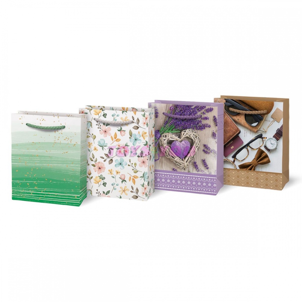 Dárková papírová taška T1 v mixu motivů a barev. Je perfektní volbou pro ty, kteří nejsou zruční nebo nemají čas na balení dárků do balicího papíru. Takto zabalený dárek získává elegantní a profesionální vzhled. Motiv: mix motivů Rozměr: 110 x 137 x 62 mm Dodáváme dle skladové zásoby. Uvedená cena je za 1 ks.