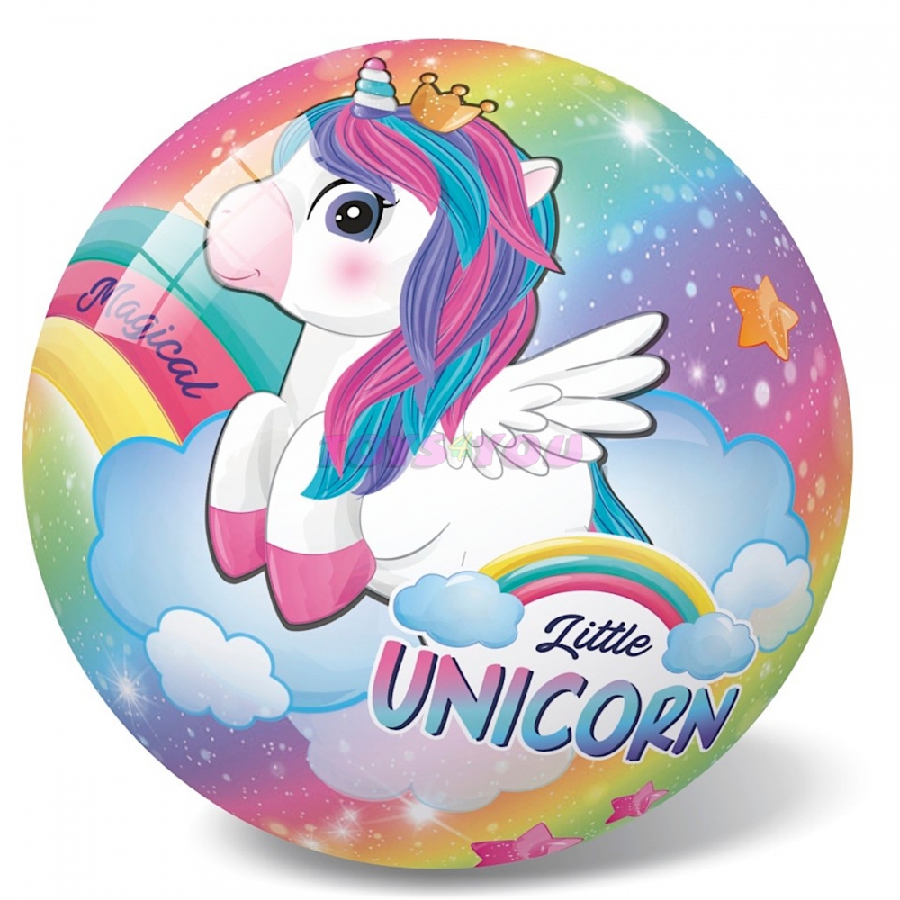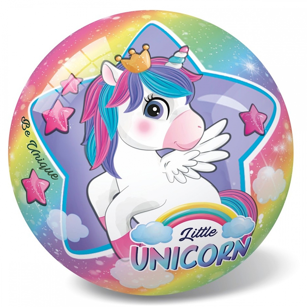 Gumový míč 14 cm s potiskem jednorožce.
