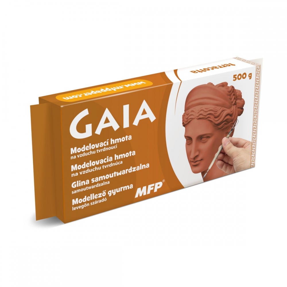 Modelovací hmota Gaia 500g terracotta - patří mezi samotvrdnoucí modelíny na vzduchu. Tato modelovací hmota je určena k okamžitému použití. Má vynikající tvárnost a je vhodná pro všechny modelovací techniky. K vytvrdnutí hotového výrobku je třeba cca 24 hodin. Po té můžete nanášet barvu nebo glazuru. Modelínu udržujte ve vzduchotěsném obalu, aby nedocházelo k jejímu vysychání. Vypratelná. Rozměr: 180mm x 75mm x 20mm (Š x V x H)