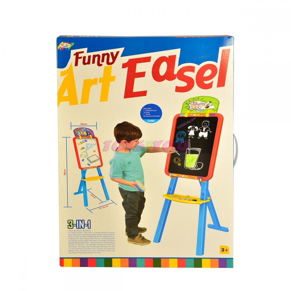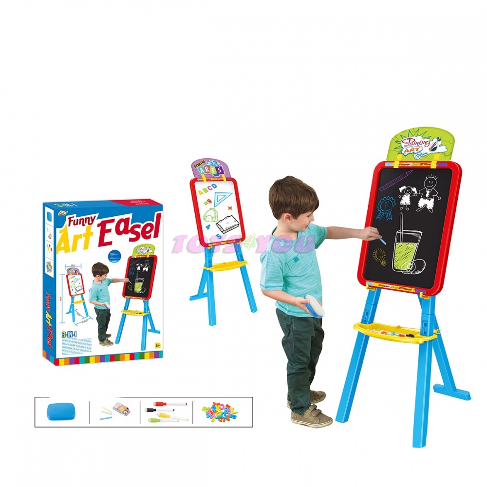 Multifunkční stojan na malování modrý. Rozměr hračky je 99 x 37 x 41 cm.