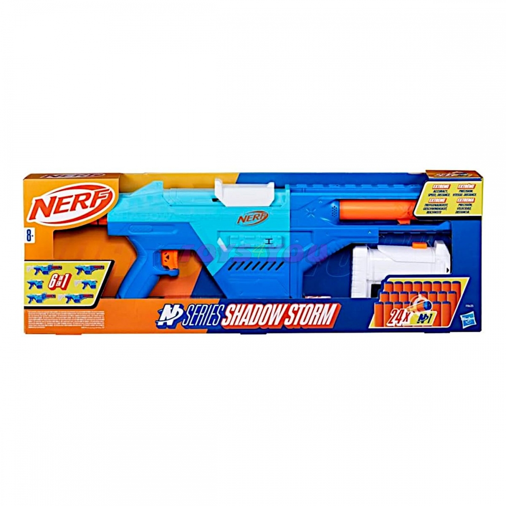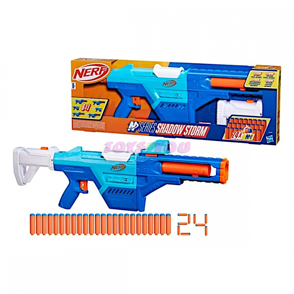 Značka Nerf oživí vaši hru výkonnými šipkami Nerf N Series a šipkami Nerf N1! Máte schopnosti jako Battler Nerf, nyní máte blaster a šipky, abyste získali vynikající výhodu při hraní uvnitř i venku. Od tvůrců pěnových šipek uvolňuje značka Nerf další evoluci v pěnovém tryskání šipek řady N1 Nerf a poskytuje extrémní přesnost, rychlost a vzdálenost. Nerf N Series Shadow Storm Dartblaster obsahuje nasazovací příslušenství, se kterým můžete vytvořit 6 různých stylů blasteru! Hřídel, hlaveň a hledí se snadno instalují a odstraňují, takže můžete během hry měnit konfigurace. Shadow Storm má interní klip 8 šipek a dodává se s 24 pěnovými šipkami Nerf N1, takže máte dostatek šipek pro více nabití. Nerf N Series Blaster jsou kompatibilní pouze se šipkami Nerf N Series N1. Eyewear recommended (není součástí dodávky) NERF a HASBRO a všechny související ochranné známky a loga jsou ochranné známky společnosti Hasbro, Inc. Varování Pozor, nebezpečí udušení – mohou být vytvořeny malé díly. Není vhodné pro děti do 3 let.
