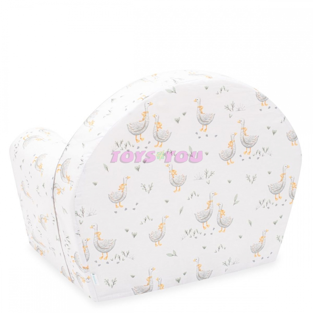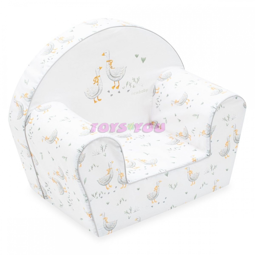 Dětské křesílko New Baby Husičky je skvělým a velmi oblíbeným doplňkem do dětského pokojíčku. Naše křeslo pro nejmenší děti je vyrobeno z měkké a lehké pěny, a má snímatelný bavlněný potah, který lze prát. Díky zipu lze potah jednoduše sundat. Potah má velmi příjemné barvy a zdobí ho obrázek husiček, čímž dítě zaujme. Dítěti zajistí komfort a vkusně doplní dětský pokojíček. Křeslo může sloužit během odpočinku či koukání na pohádky, nebo také při zábavě. Navrhujeme si nadčasové, elegantní a stylové vzory pro děti. Materiály mají certifikát OEKO-TEX STANDARD 100. Rozměry:42x52x30. Složení: potah 100% bavlna, vnitřní materiál: polyuretanová pěna. Charakteristika: - pro děti od cca 9 měsíců do 5 let - vyrobeno z polyuretanové pěny - žádné tvrdé prvky - bezpečné pro děti - snadné použití, přenášení a údržba - potah je ze 100% bavlny - snímatelný potah se zipem - hmotnost 1 kg - rozměry: 42 × 52 × 30 cm