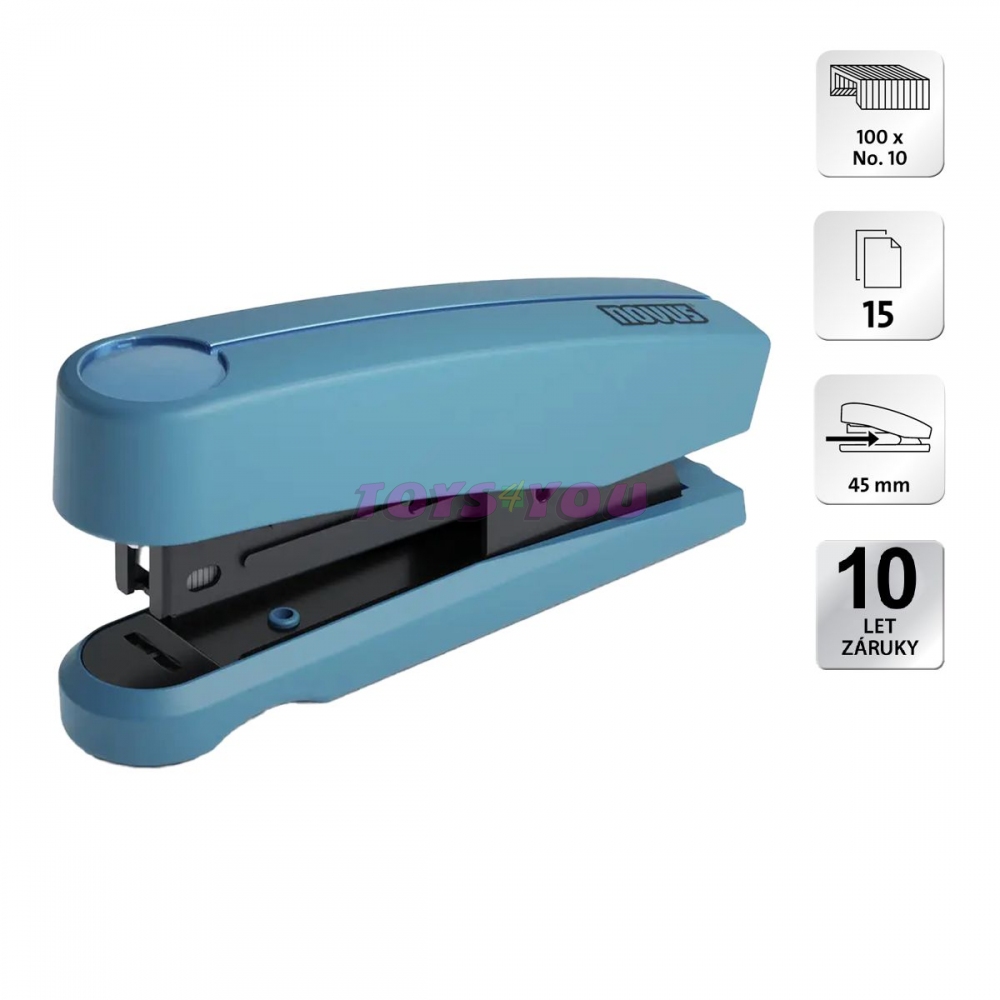 Kompaktní a výkonná sešívačka menší velikosti pro efektivní práci doma nebo v kanceláři. Odolná, celokovová konstrukce s částečným plastovým krytem pro dlouhou životnost a spolehlivý výkon. Snadné příbíjení sponek na vertikální povrch, pevný způsob sešívání. Integrovaný odstraňovač sponek, horní plnění pro snadné a rychlé doplnění. Ergonomický design a moderní barvy. hloubka vkládání: 45 mm kapacita: 15 listů (80 g/m2) kapacita zásobníku: 100 ks č.10, součástí balení vertikální použití, pevný způsob sešívání horní plnění sponek, integrovaný odstraňovač sponek barva: světle fialová záruka 10 let balení: 1 ks