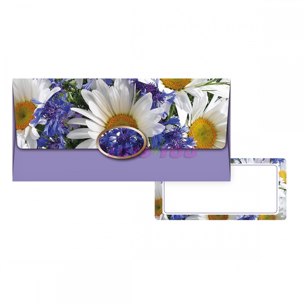 Obálka na peníze s květinovým motivem v odstínech fialové. Ideální volbou pro darování finančního obnosu při příležitostech, jako jsou svatby, narozeniny nebo jiné oslavy. Obálka obsahuje kartičku pro případný vzkaz, přání či osobní věnování, čímž dodá vašemu daru osobní nádech. Uzávěr na přední straně spolehlivě zajistí, že obsah zůstane bezpečně uložen. Motiv: květy Barva: fialová Dodáváme v plastovém sáčku se závěsem. Uvedená cena je za 1 ks. Hmotnost: 0.01 kg Rozměr: 180mm x 85mm x 2mm (Š x V x H). Vyrobeno v EU.