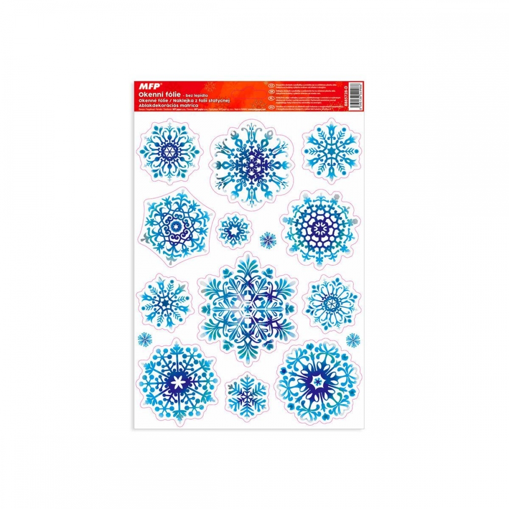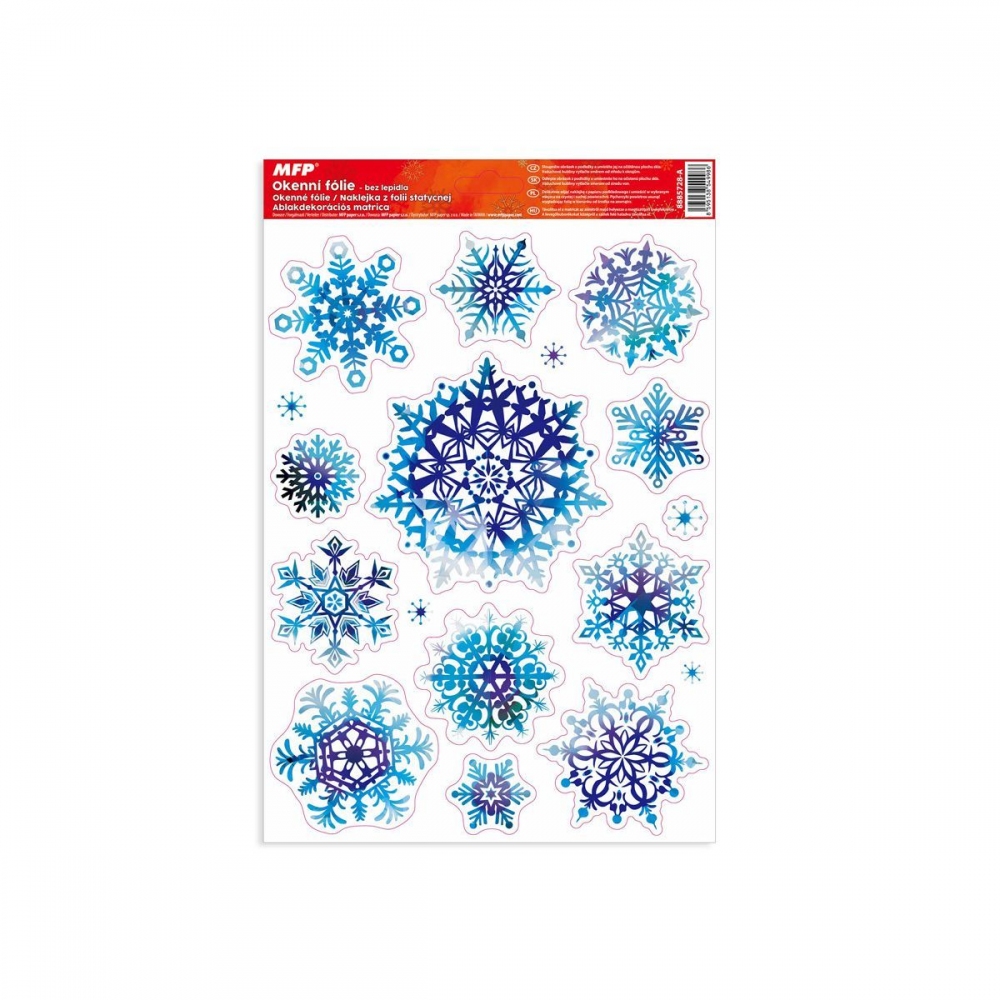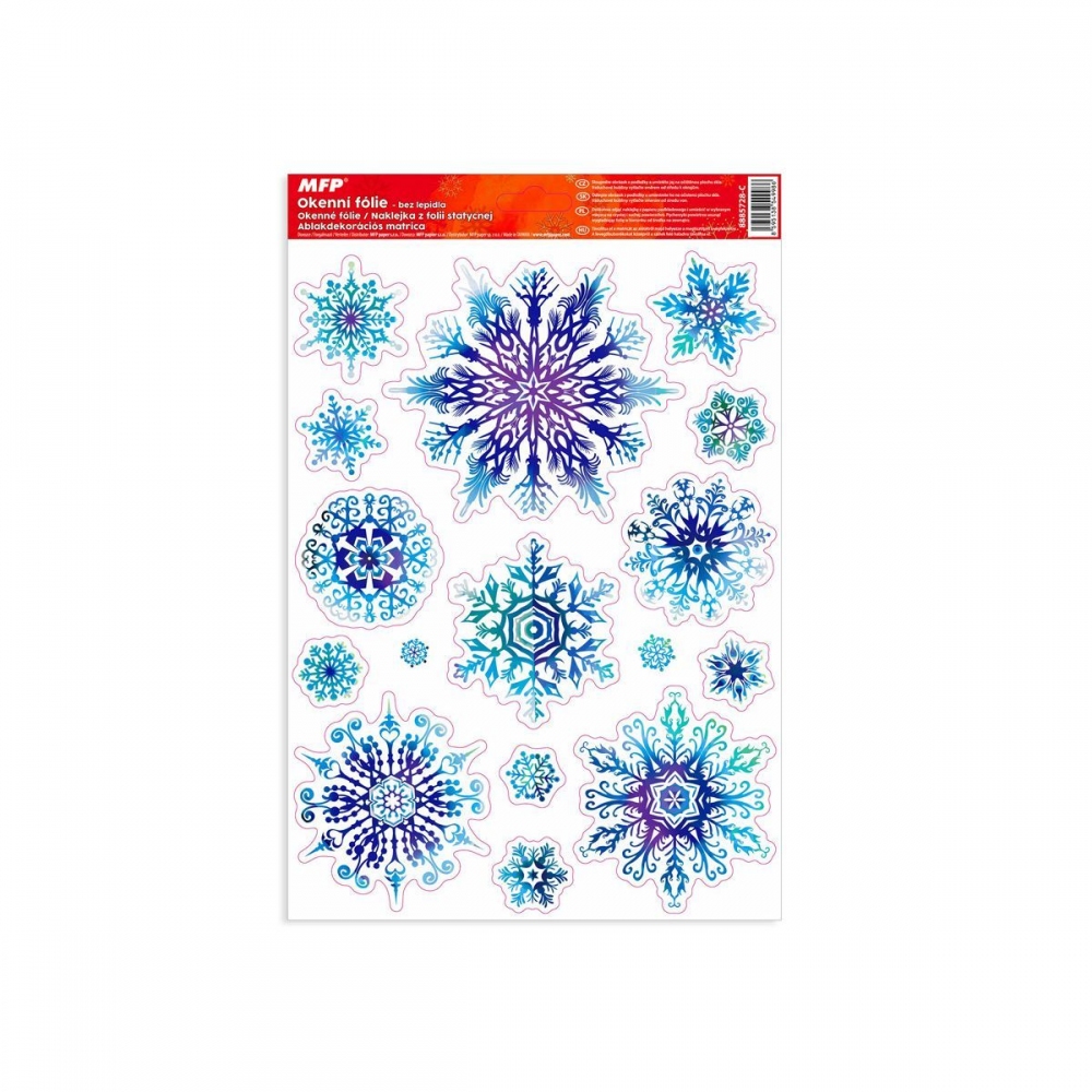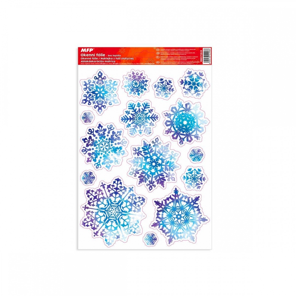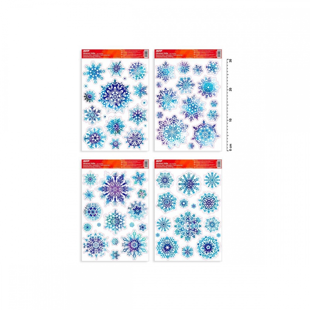 Okenní fólie - vánoční modrofialové vločky s glitrem - Vyzdobte si okno těmito krásnými samolepkami na okno. Vytvoří Vám kouzelnou atmosféru domova.