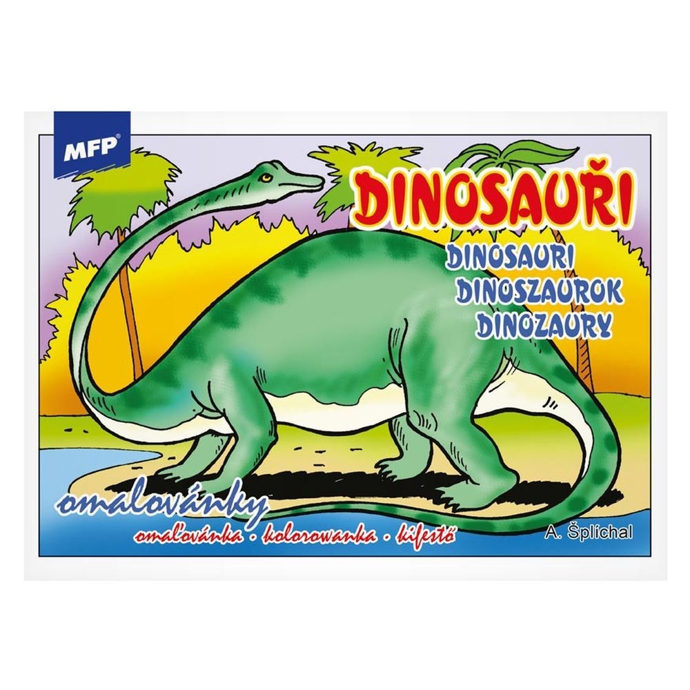 Dětské omalovánky MFP - Dinosauři - Udělejte si pohodové odpoledne s dětmi a vybarvěte si omalovánku. Vybarvování obrázků pomůže rozvíjet řadu schopností a dovedností, zejména má velký vliv na jemnou motoriku ruky. Díky velikým obrázkům jsou tyto omalovánky vhodné i pro menší děti. Počet předloh k vymalování: 8 (stegosaurus, triceratops, iguandon, tyranosaurus rex, brontosaurus, pterodaktyl, aj.) Počet stran: 16. Rozměr: 210mm x 148mm x 2mm (Š x V x H) . Věk: 3+