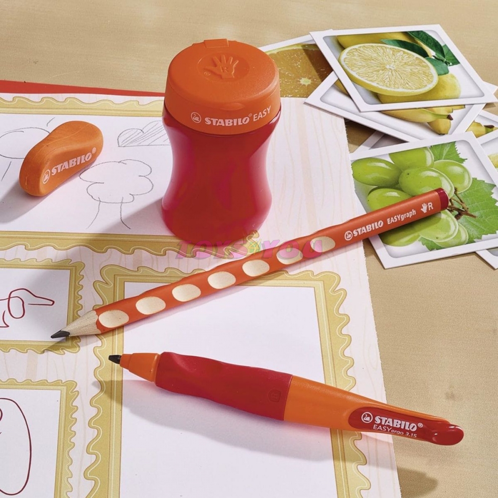 STABILO EASYsharpener je ergonomické ořezávátko se zásobníkem na 3 různé tloušťky tužek. Ideální pro EASYgraph a EASY colors, všechny tenké tužky a pastelky a také pro EASYergo 3.15. Ořezávátko má praktický kontejner s uzavíratelným víčkem a ořezávací břity jsou chráněny bezpečnostní pojistkou, která brání možnému pořezání. Toto ořezovátko je určeno pro praváky. V nabídce v různých barvách.