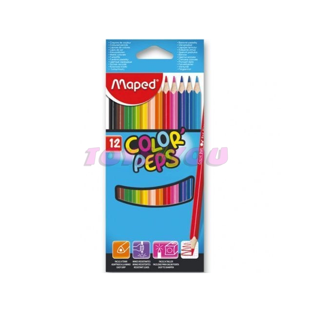 Ergonomické trojhranné pastelky s měkkou odolnou tuhou. Pastelky mají jasné barvy. Balení obsahuje 12 barev.