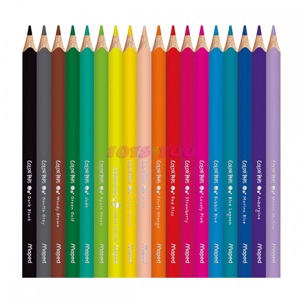 Souprava 18 kusů silných pastelek Color Peps v papírovém pouzdře. Trojhranné tělo, měkká a odolná tuha. Jemné barvy,délka pastelky cca 17 cm,tloušťka tuhy 4,7 mm. Věk: 2+