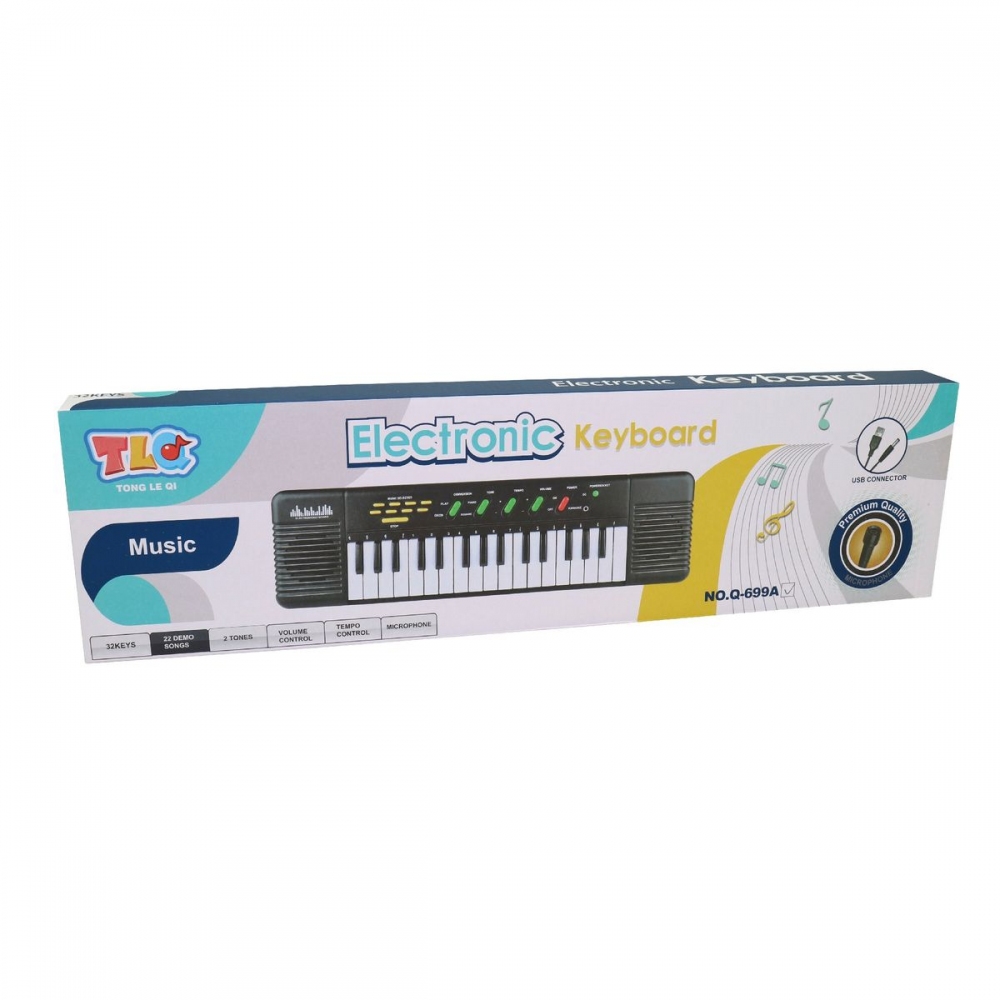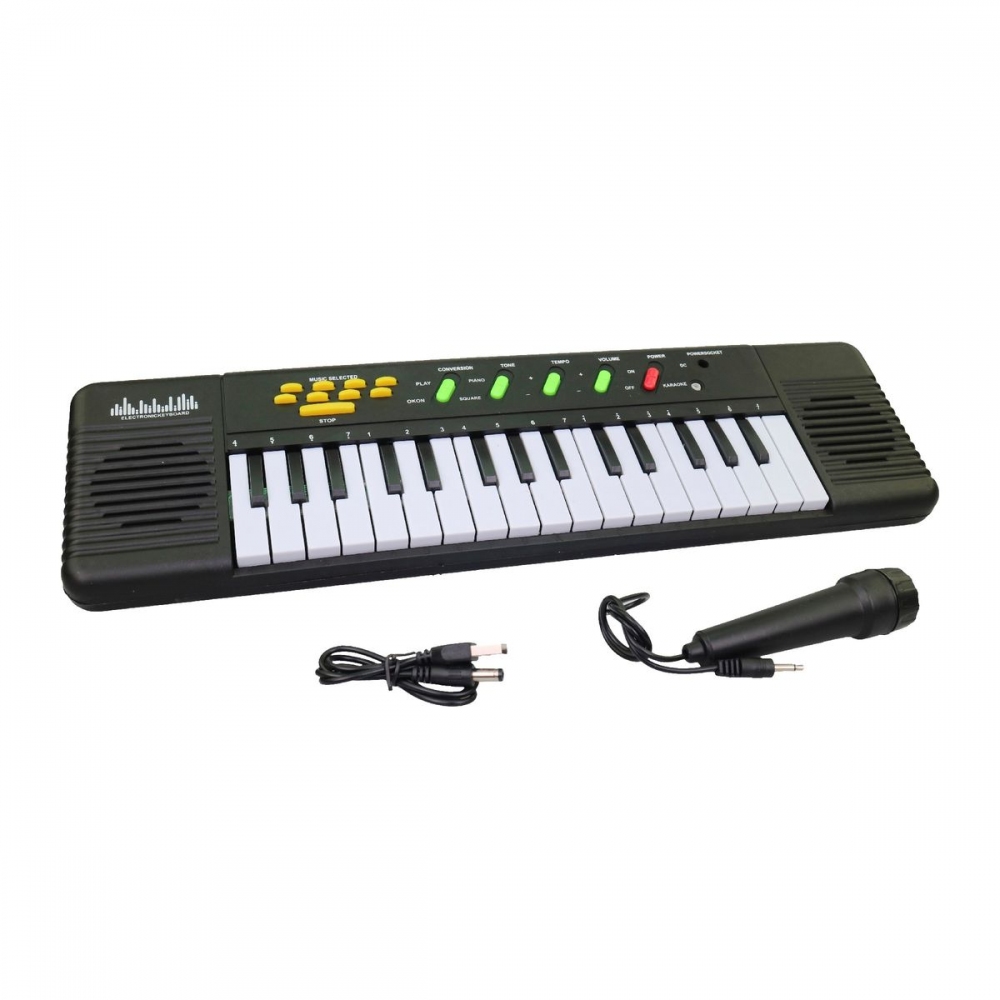 Piáno elektronické, 32 kláves, mikrofon, USB konektor. Zajímá se Vaše dítě o hru na klavír? Pak do začátků je vhodné piáno se 32 klávesami. Zvuk můžete doladit pomocí volby rytmu. Piánko ukrývá také 22 demo skladeb. Samozřejmostí je tlačítko pro zvolení možnosti nahrávání písní a také úprava hlasitosti. Součástí piána je mikrofon. Děti tak mohou během svého hraní také zpívat. Piáno lze napájet přes USB kabel nebo také 4 AA bateriemi, které nejsou součástí balení. Užijte si první hudební zážitky společně s dětmi. Hračka je určena pro děti 3+. Rozměr hračky je 47,5 x 13,5 x 2 cm. Materiál hračky je plast. Balení hračky je box. Produkt je určený pro kohokoliv. Ke zprovoznění produktu jsou potřeba 4 AA baterie. Baterie nejsou součástí balení. Baterie ANO Obsahuje bat. NE Druhy 1 Barvy 1 Doporučeny věk 3+ Typ obalu box Výška boxu 51,5 cm Šířka boxu 14 cm Hloubka boxu 4 cm Materiál plast Rozměr hračky 47,5 x 13,5 x 2 cm Určení Kohokoliv Počet baterií 4 Typ baterií AA