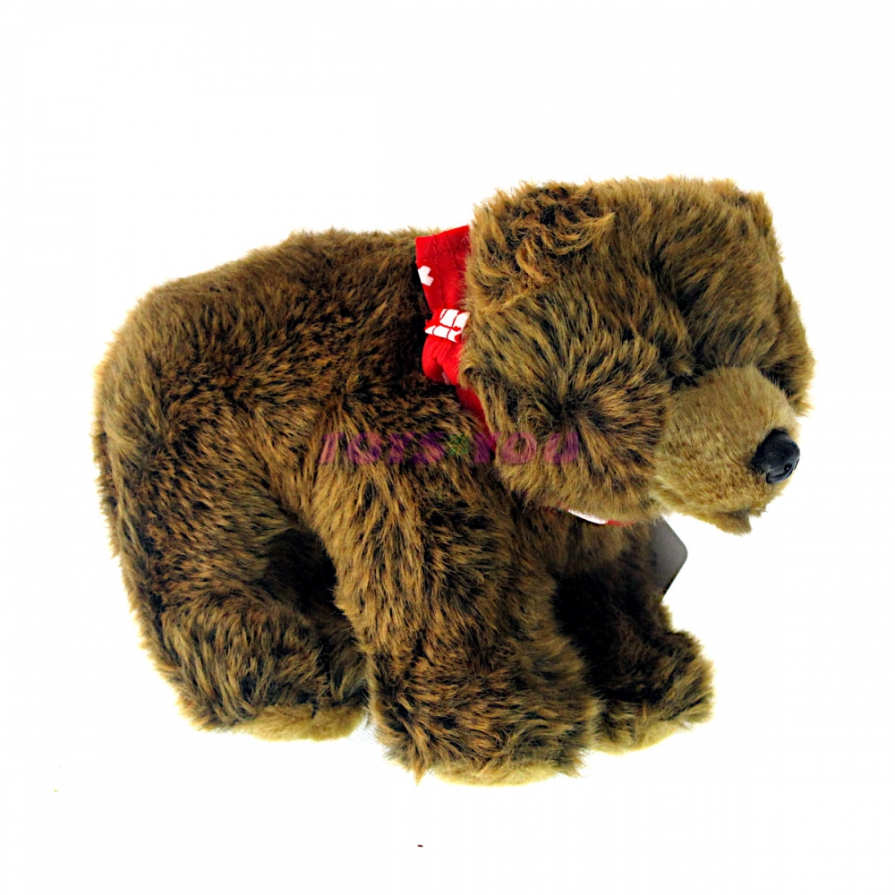 Plyšový medvěd hnědý se šátkem. Rozměr cca 20 x 12,5 x 9 cm. Věk 0+