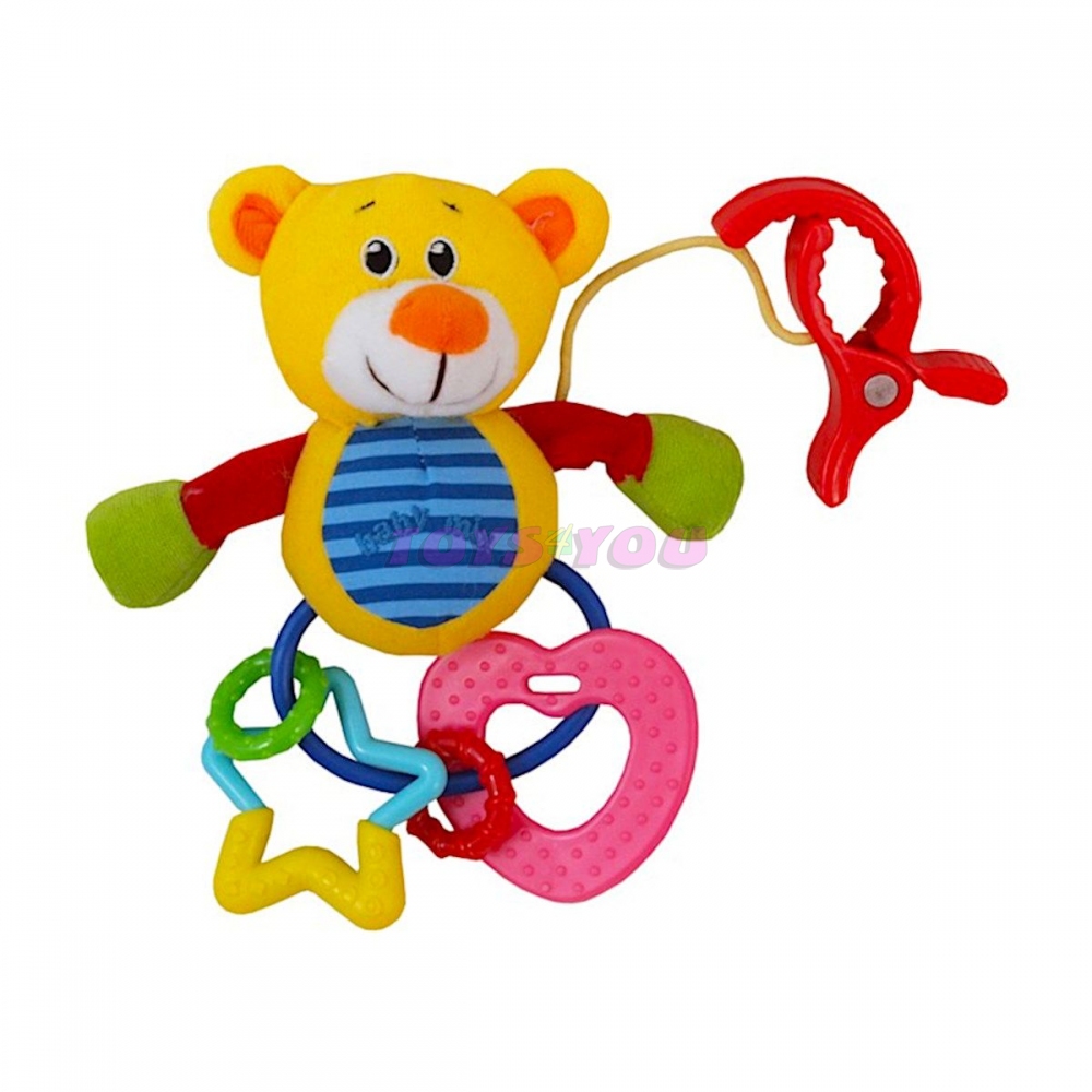 Barevná chrastící hračka pro miminka. Díky klipu se dá dětská hračka připevnit ke kočárku nebo postýlce. Výška cca 18 cm. Vhodné pro děti od prvních dnů života. Věk: 0+