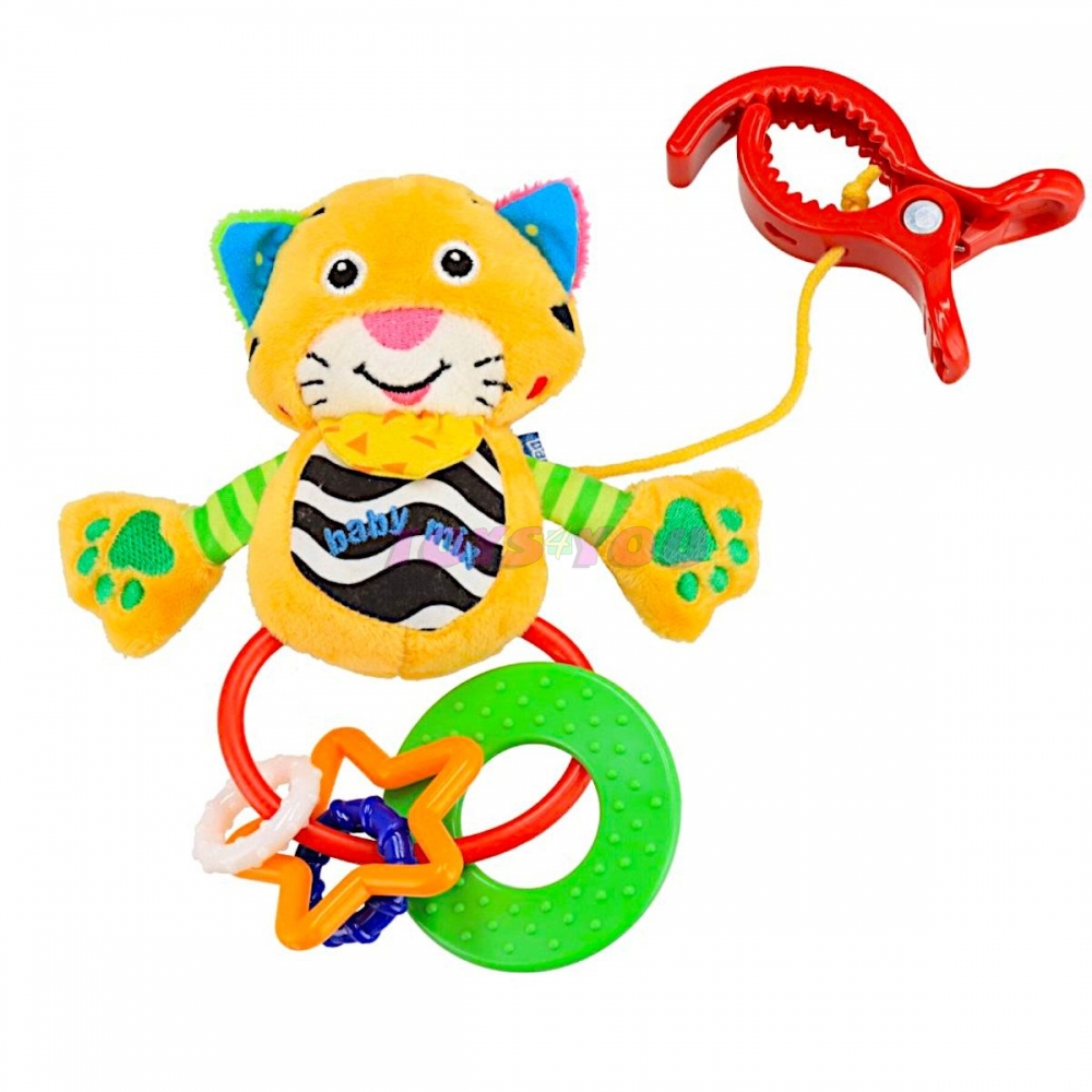Krásná barevná chrastící hračka pro miminka. Díky klipu se dá dětská hračka připevnit ke kočárku nebo postýlce. Tvary a barvy hračky lákají pozornost dítěte, učí ho a baví, rozvíjí dětskou fantazii. Díky veselým barevným provedením bude Vaše dítě objevovat svět barev, tvarů a zvuků. Hračka je vyrobená z kvalitního a příjemného materiálu. Výška cca 11 cm. Vhodné pro děti od prvních dnů života. Věk: 0+