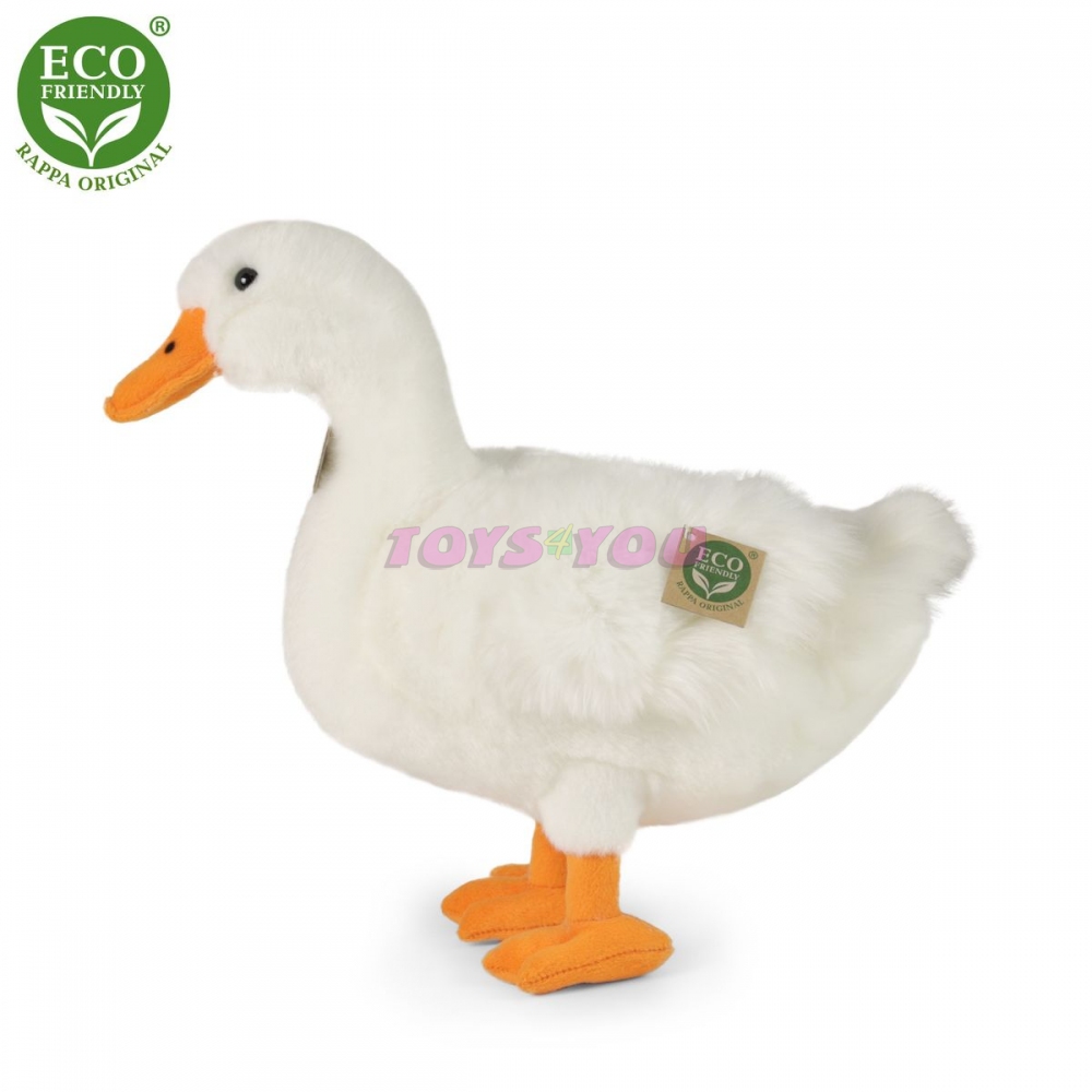 Plyšová kachna bílá ve velikosti 33 cm je vyrobena z vysoce kvalitní plyše a je tak součástí exkluzivní kolekce plyšových hraček RAPPA. Co to vlastně ECO-FRIENDLY znamená? Výplň plyšové hračky je vyrobena z recyklovaných PET lahví. Tento materiál je zcela bezpečný, na omak nerozeznatelný od standartní výplně a plně atestovaný pro bezpečnost i těch nejmenších. Rozhodli jsme se jít zelenou cestou co nejméně zatěžující životní prostředí- cestou ECO-FRIENDLY.