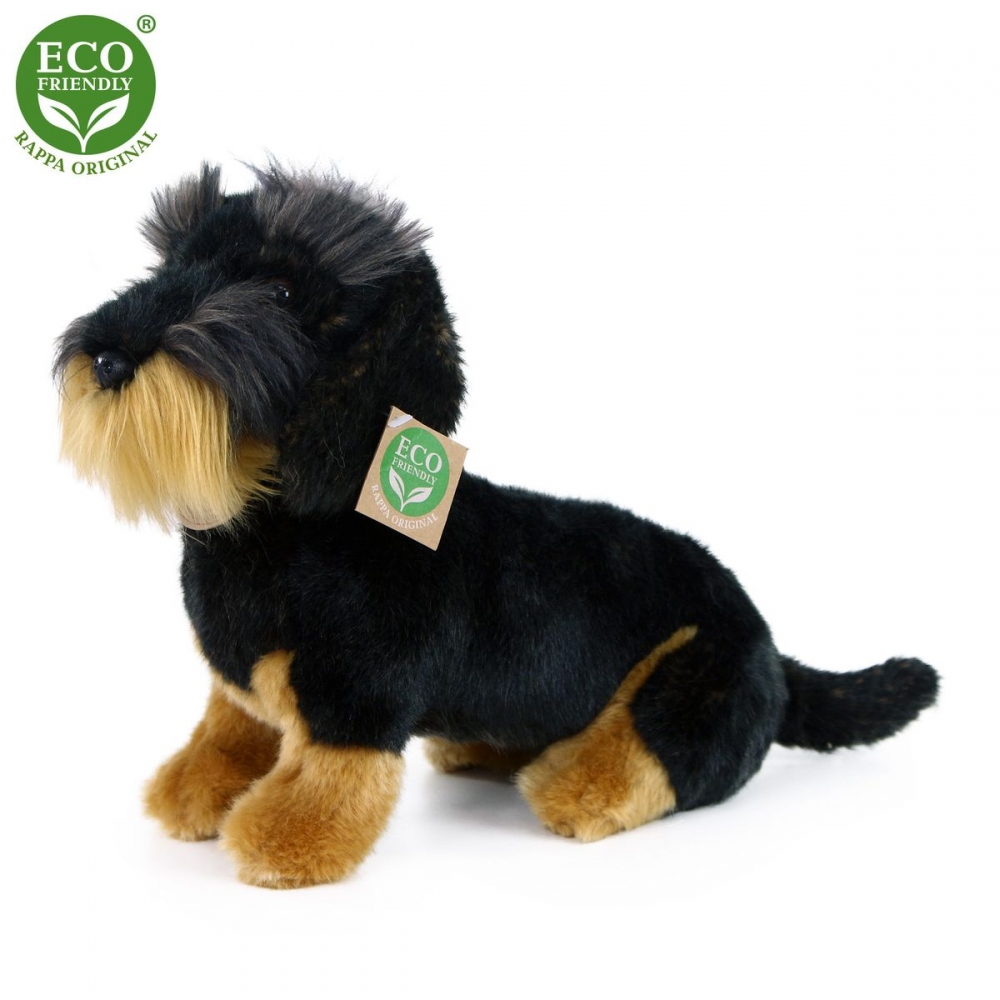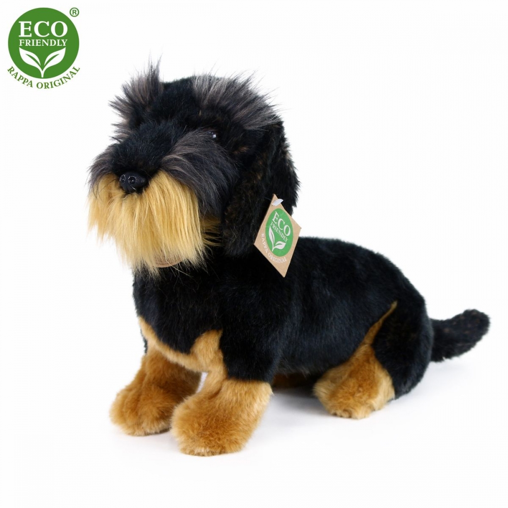 Plyšový pes drsnosrstý jezevčík o velikosti 30 cm je vyroben z exkluzivní, velmi kvalitní plyše. Tento senzační plyšový kousek je ideální i jako dárek! Plyšový pejsek je součástí exkluzivní kolekce plyšových hraček RAPPA. Co to vlastně ECO-FRIENDLY znamená? Výplň plyšové hračky je vyrobena z recyklovaných PET lahví. Tento materiál je zcela bezpečný, na omak nerozeznatelný od standartní výplně a plně atestovaný pro bezpečnost i těch nejmenších. Rozhodli jsme se jít zelenou cestou co nejméně zatěžující životní prostředí- cestou ECO-FRIENDLY.