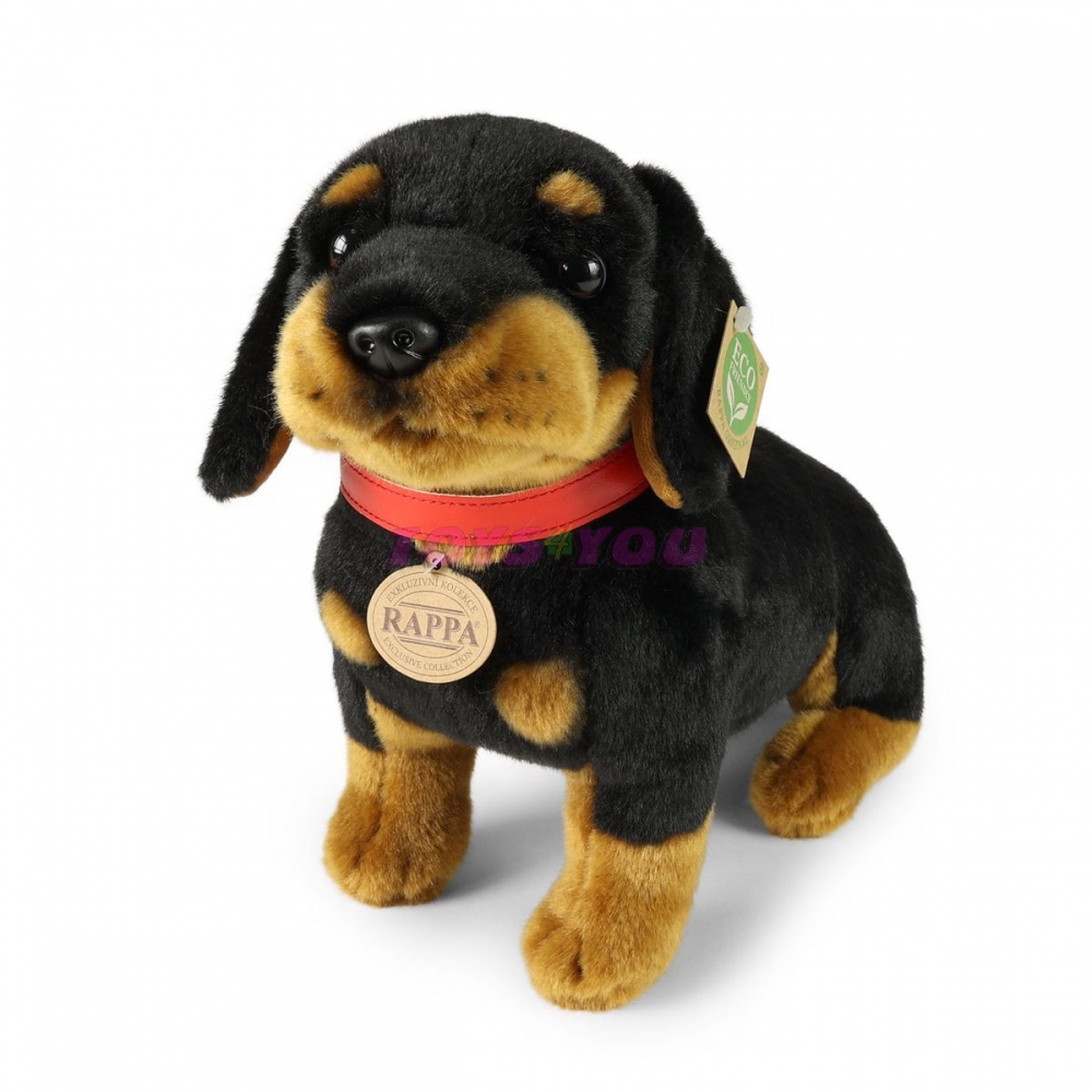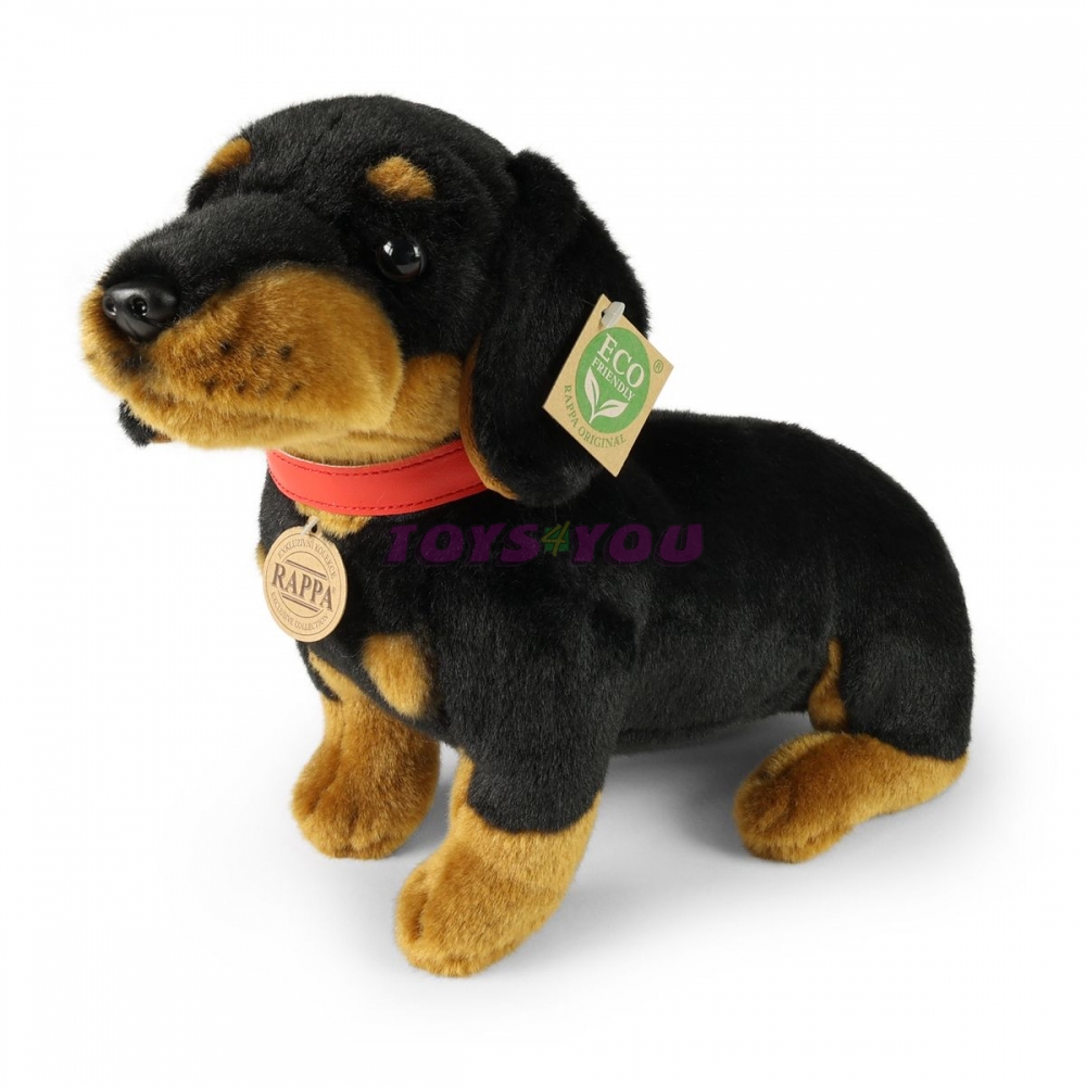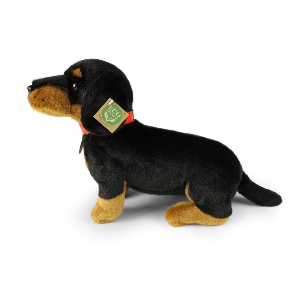 Plyšový pes jezevčík o velikosti 30 cm je vyroben z exkluzivní, velmi kvalitní plyše. Tento senzační plyšový kousek je ideální i jako dárek! Plyšový pejsek je součástí exkluzivní kolekce plyšových hraček RAPPA. Co to vlastně ECO-FRIENDLY znamená? Výplň plyšové hračky je vyrobena z recyklovaných PET lahví. Tento materiál je zcela bezpečný, na omak nerozeznatelný od standardní výplně a plně atestovaný pro bezpečnost i těch nejmenších. Rozhodli jsme se jít zelenou cestou co nejméně zatěžující životní prostředí- cestou ECO-FRIENDLY.