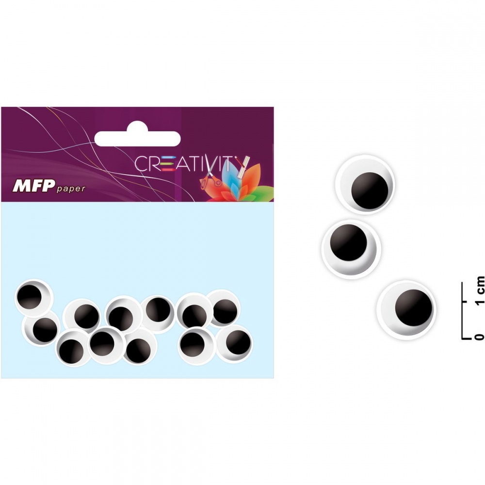 Pohyblivé nalepovací oči o průměru 1,5cm. Určeno pro dekorativní účely. Balení 12 ks.