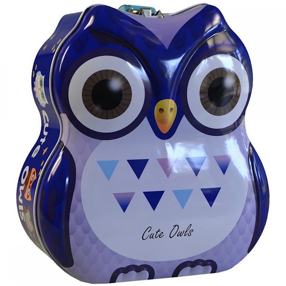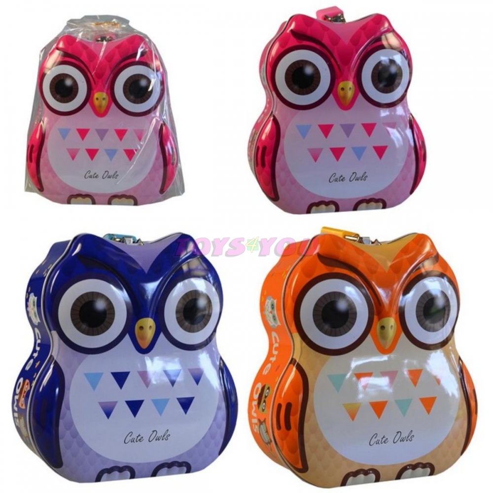 Pokladnička sova Hračka je určena pro děti 3+. Rozměr hračky je 15,5x14,5x7cm. Materiál hračky je kov. Balení hračky je sáček.
