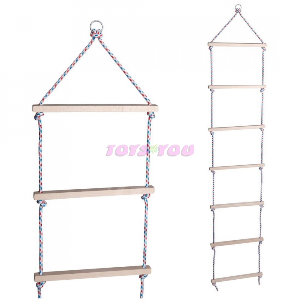 Sedm dřevěných příček upevněných na provazovém závěsu poskytuje dětem možnost aktivního pohybu nahoru a dolů. Lezením si komplexně zapojují všechny svalíky na těle a posilují si tak pohyblivost. Nosnost žebříku 80 kg, délka žebříku 2 m. Věk: 3+