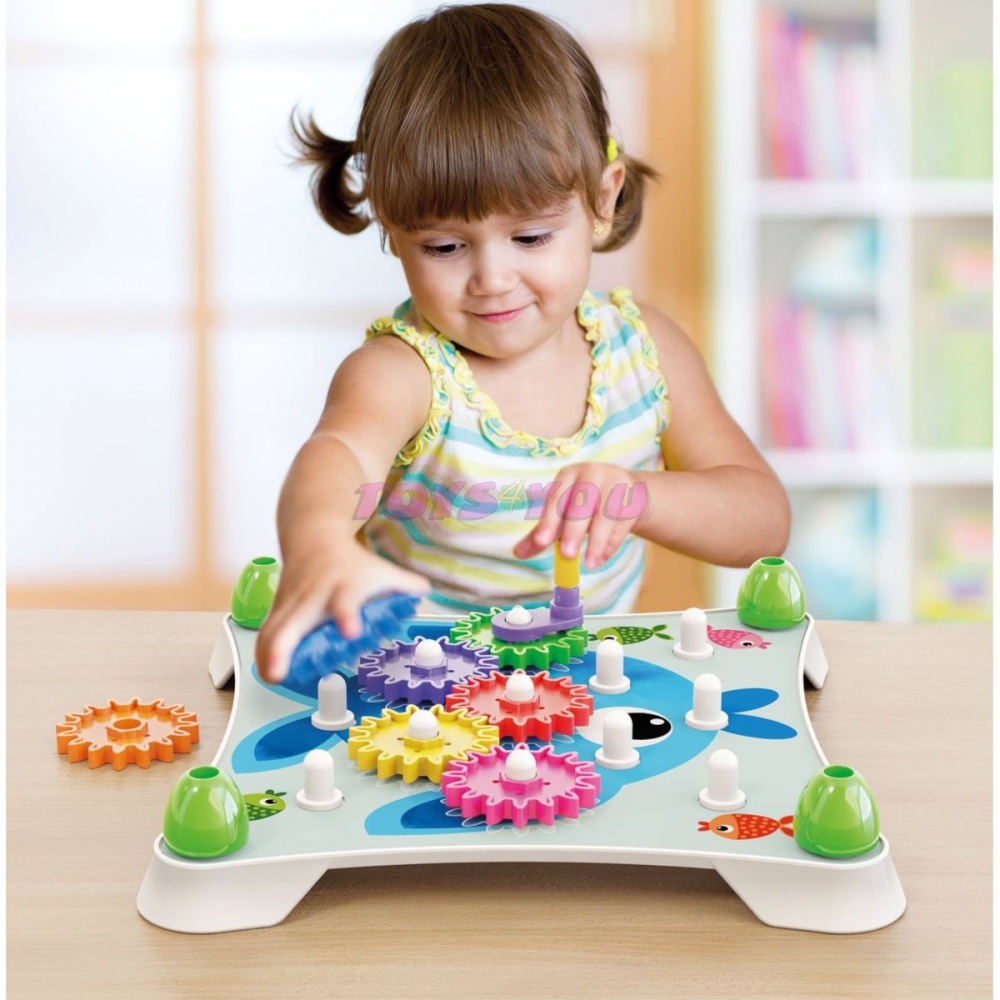 Spinning zařízení jsou skvělá vzdělávací zábava! Tato kreativní sada umožňuje dětem naučit se jednoduché principy mechaniky. Batole musí vložit prkno, umístit převody a otočit klikou. Velkolepá řetězová reakce překvapí a okouzlí každé dítě. Tato hračka rozvíjí koordinaci oko-ruka, jemnou motoriku a podporuje kreativní myšlení.. Věk: 3+