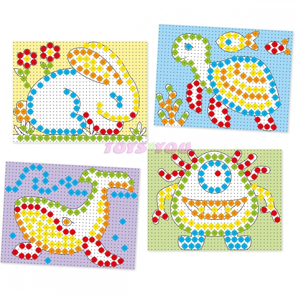 QUERCETTI MOSAIC FANTACOLOR PORTABLE SMALL, vytváření mozaiky vkládáním kolíčků do děrované desky podle navrženého vzoru nebo vlastní fantazie je skvělá a kreativní zábava. Hračka stimuluje rozpoznávání barev, rozvíjí manuální dovednosti a motorickou koordinaci. Sada se skládá ze 150 kolíčků o průměru PRŮMĚR-10, kartonových kartiček - vzorů a kufru s uchem, ze kterého se po rozložení stane stojánek a tabule o rozměru 22x16cm. Hračka byla vyrobena v Itálii.. Určeno dětem od 3 do 6 let