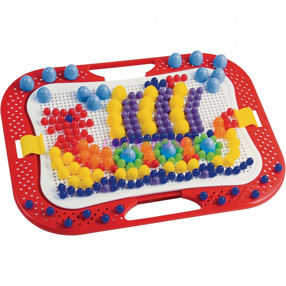 Souprava rozvíjející dětskou motoriku, tvořivost a fantazii se skládá z hrací desky a kontejneru ve tvaru sedmikrásky a 300 kolíčků s hlavičkami o průměru 10,15 a 20 mm. Věk: + 4 let