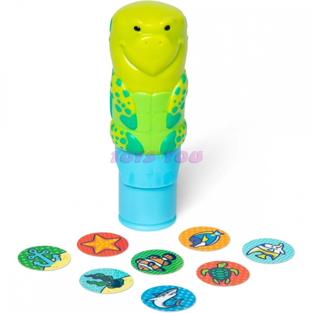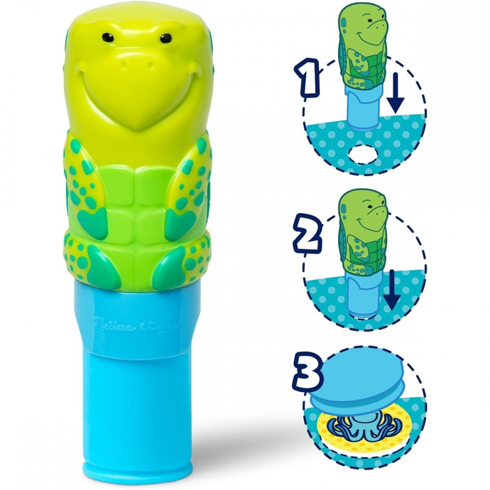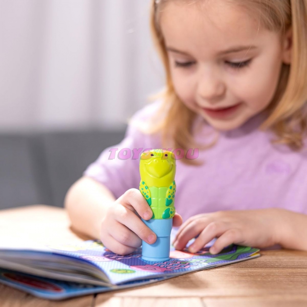 Razítkovač se samolepkami Sticker WOW!™ od Melissa & Doug je zcela nový způsob, jak si hrát se samolepkami! Nechte rozkošného sběratelského dinosaura Olivu razítkovat a razítkovat, razit si cestu přes 24 stránek plných zábavy s prehistorickou tématikou počítání, přiřazování a hledání.