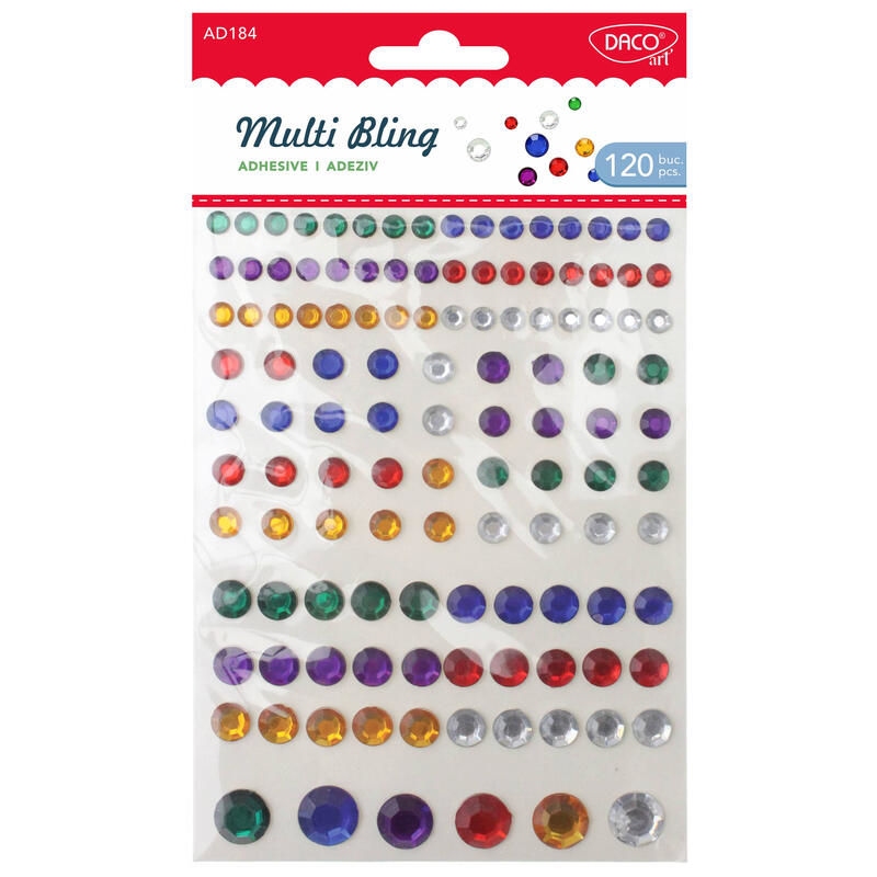 Samolepící kamínky mix velikostí a barev. Obsahuje: 120 ks samolepících kamínků. Rozměry balení : 12 x 19 cm.