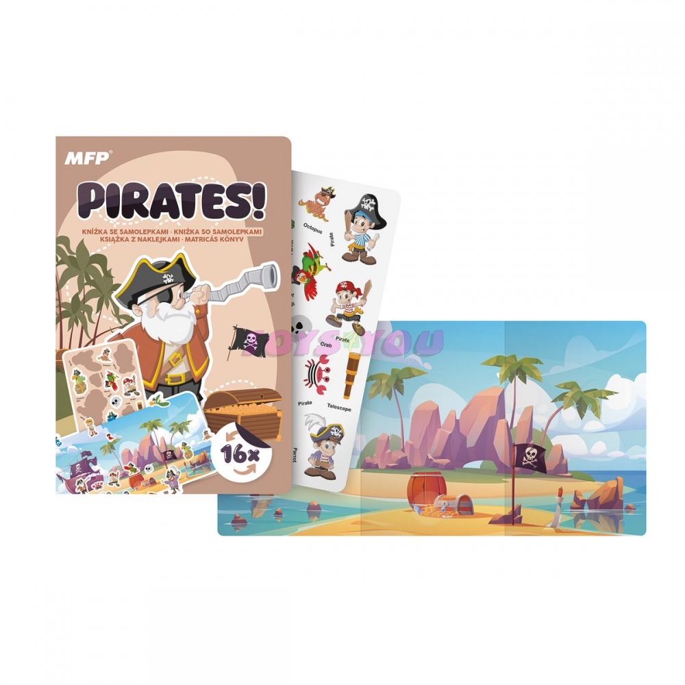 Připravte se na vzrušující plavbu po moři plném pokladů, odvážných pirátů a fantastických příběhů! Tato samolepková kniha "Piráti" vtáhne děti do světa lodí, map a skrytých truhlic plných zlata. Obsahuje 16 znovupoužitelných samolepek s motivy pravých pirátských hrdinů, pokladů, exotických zvířat a spousty dalších doplňků, které dodají každému příběhu ten správný šmrnc. Jedna strana knihy je věnována pečlivému umisťování samolepek do připravených obrysů, zatímco na druhé straně čeká tajemná pirátská scéna, kde mohou děti popustit uzdu své fantazii. Budou bránit poklad před nebezpečnou chobotnicí? Nebo objeví nový ostrov s truhlou plnou zlata? Je to jen na nich! Motiv: pirátský Rozměr: 120 x 180 mm VAROVÁNÍ: Nevhodné pro děti do 3 let. Nebezpečí vdechnutí a spolknutí malých částic. Dodáváme v sáčku se závěsem. Uvedená cena je za 1 ks. Varování: Nebezpečí udušení. Malé části. Výrobek splňuje certifikaci CE Výrobek je určen pro děti od 3 let