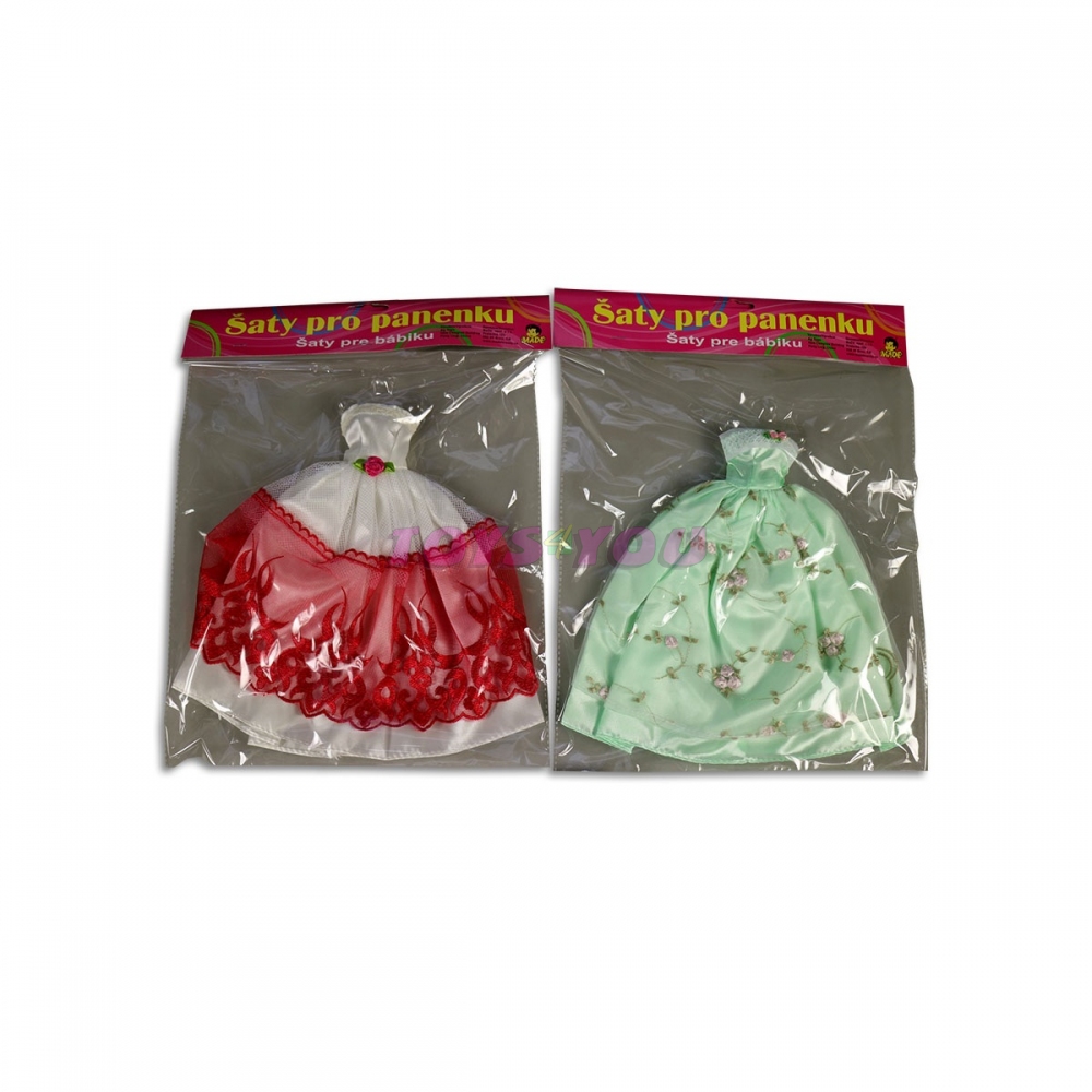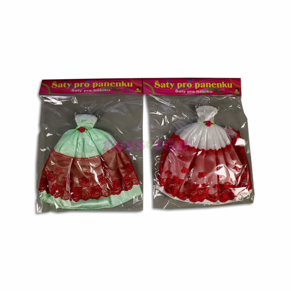 Assort 24 druhů šatů pro panenky s různými dekoracemi. (na dotaz). Věk: 3+