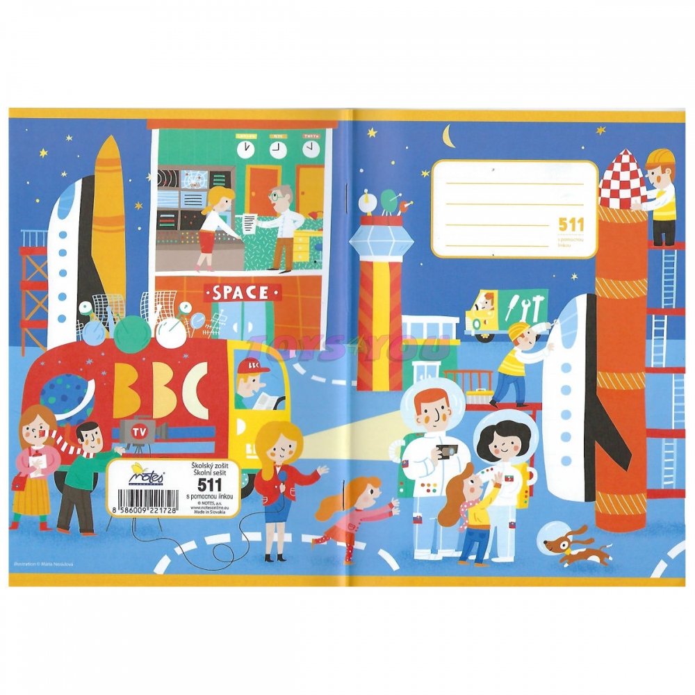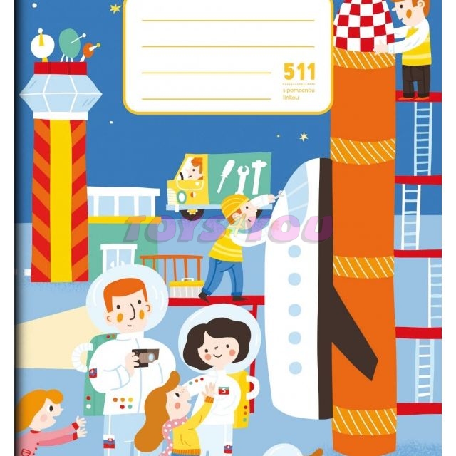 Sešit velikosti A5, 10 linkovaných listů. Šířka linky 16 mm. Jedna pomocná linka na každém řádku.