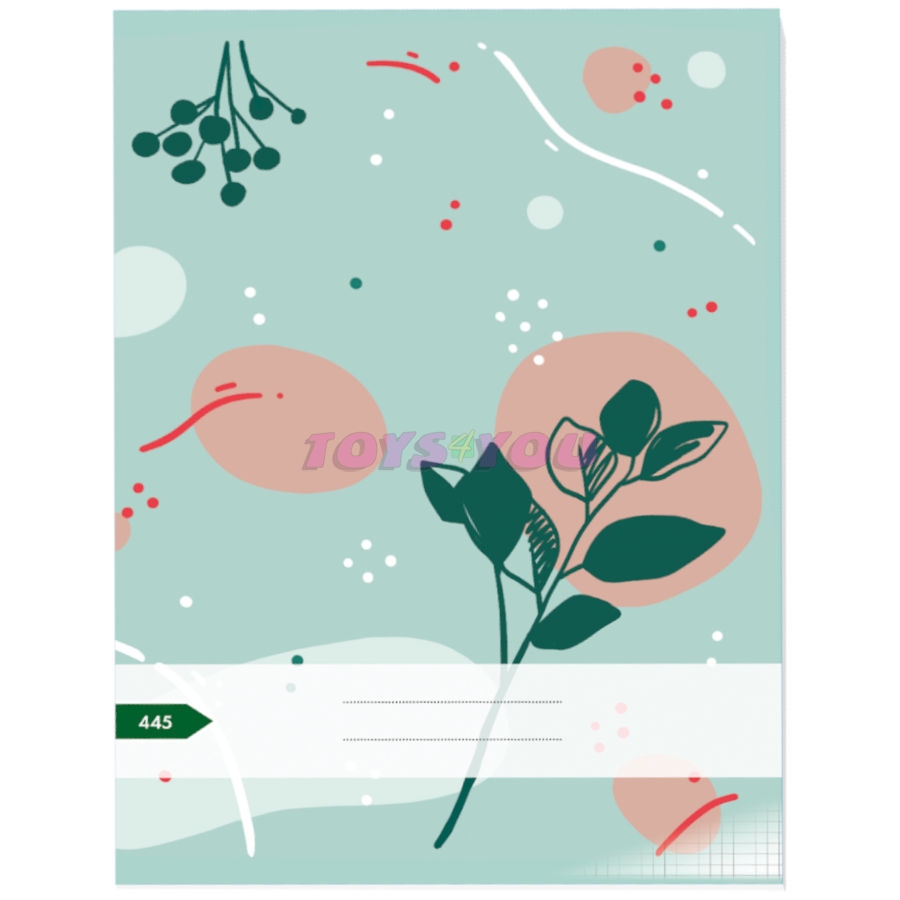 Sešit 445. Velký sešit se čtverečkovaným papírem (5 × 5 mm). Typické využití: Čtverečkovaný sešit pro základní i střední školy. Základní vlastnosti sešitu: Čtverečkovaný papír (5 × 5 mm). Formát A4 40 listů. Gramáž papíru 60 g/m2. Vyroben z hladkého bezdřevého papíru
