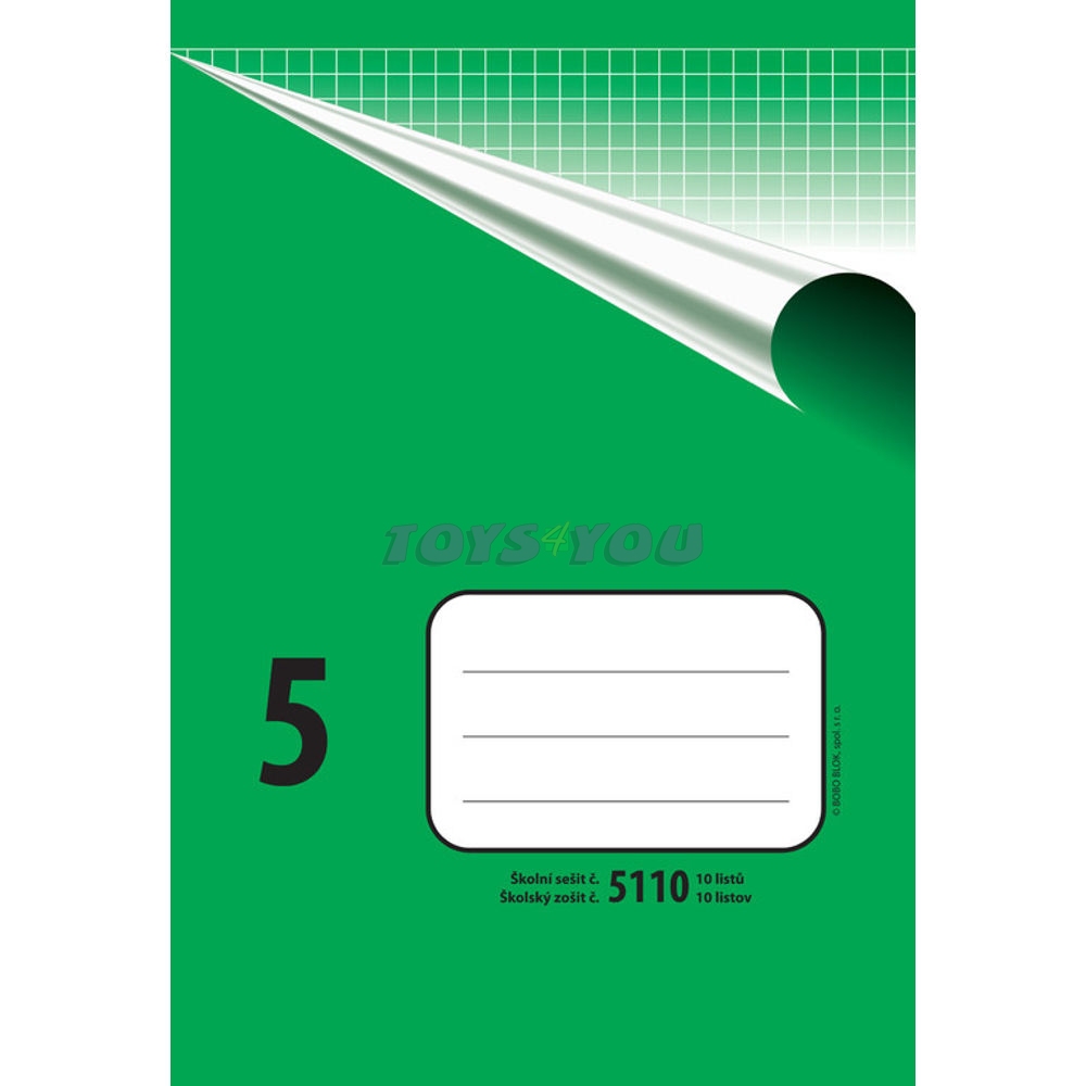 Školní sešit čtverečkovaný č.5110, formát A5, 10 listů. Čtverečky mají rozměr 10 x 10 mm. Vyrobený z bezdřevého papíru.