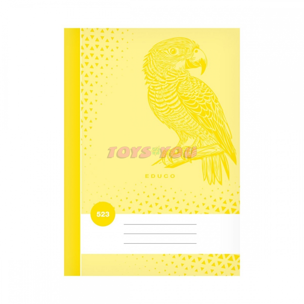Školní linkovaný sešit ve formátu A5, ve žluté barvě, s motivem papouška, v deskách z křídového papíru. Stránky jsou bez okrajů. Typ: 523 Formát: A5 Barva: žlutá Motiv: papoušek Šířka řádku: 12 mm Počet listů: 20, linkované Gramáž listů papíru: 60 g/m2 Desky: matný křídový papír 200 g/m2 Hmotnost: 0.06 kg Rozměr: 150mm x 210mm x 3mm (Š x V x H) Uvedená cena je za 1 ks.