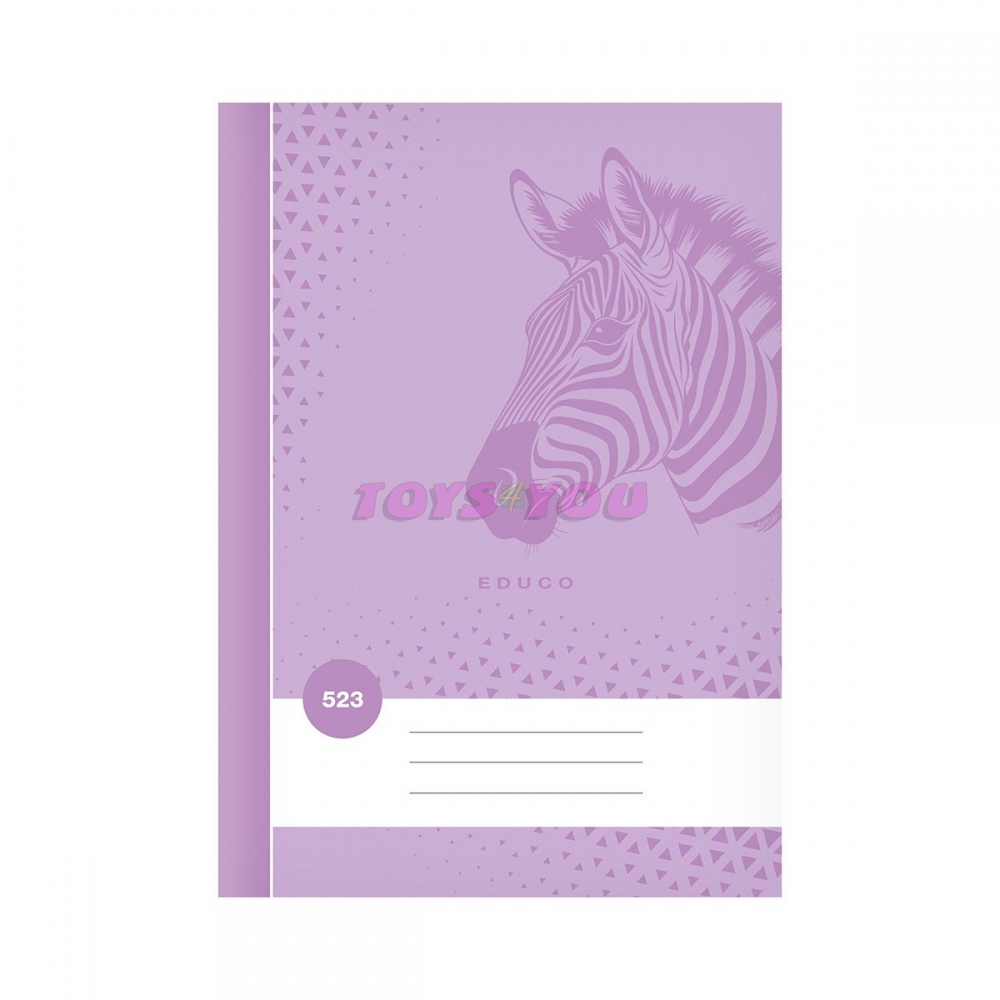 Školní linkovaný sešit ve formátu A5, ve fialové barvě, s motivem zebry, v deskách z křídového papíru. Stránky jsou bez okrajů. Typ: 523 Motiv: zebra Barva: fialová Šířka řádku: 12 mm Počet listů: 20 s linkou Gramáž listů papíru: 60 g Desky: matný křídový papír 200 g Uvedená cena je za 1 ks.