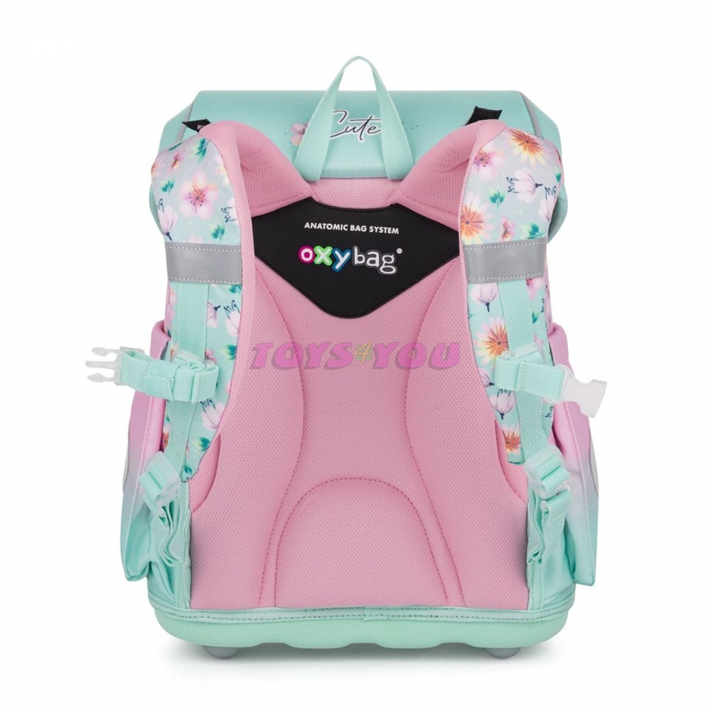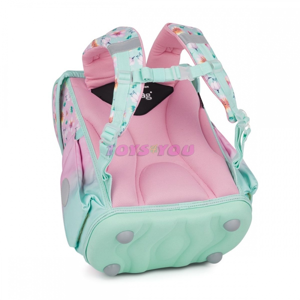 Aktovka: Školní aktovka z řady Premium je anatomicky tvarovaná a zajišťuje tak správné usazení na zádech. Vyztužená záda a vnitřní výztuha udržují stálý tvar batohu. Polstrování je z příjemného prodyšného materiálu, široké měkčené popruhy jsou navrženy tak, aby dokonale přilnuly a rovnoměrně zatížily ramena dítěte. Aktovka se skládá z jedné prostorné komory, kam se pohodlně vejdou všechny školní pomůcky pro děti v 1. a ve 2. třídě. Dno batohu je z pevného materiálu, chrání tím obsah před převržením a vysypáním. Zapínání je na bezpečnostní kovovou přezku s reflexní odrazkou. Přední kapsička je určena na svačinu, nechybí řada reflexních prvků, díky kterým je aktovka viditelnější. Délka zádového panelu: 33 cm. Objem: 27 l. Nosnost: 8 kg. Sáček: Praktický sáček na cvičky nebo přezůvky do školy. Uzavírá se snadno stažením šňůrek. Penál: Jednopatrový školní penál se dvěma chlopněmi bez náplně. Gumová poutka k uchycení psacích potřeb. Na vnitřní chlopni je průhledná fólie na rozvrh hodin.
