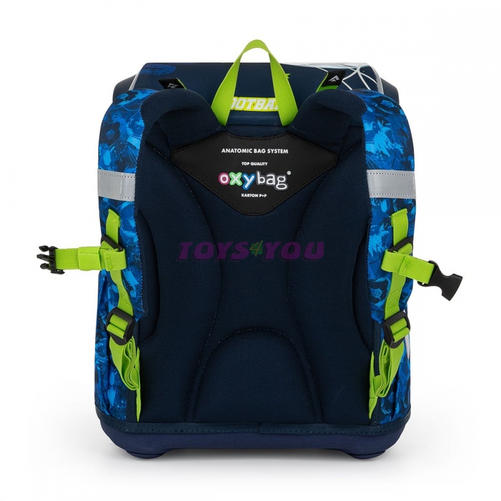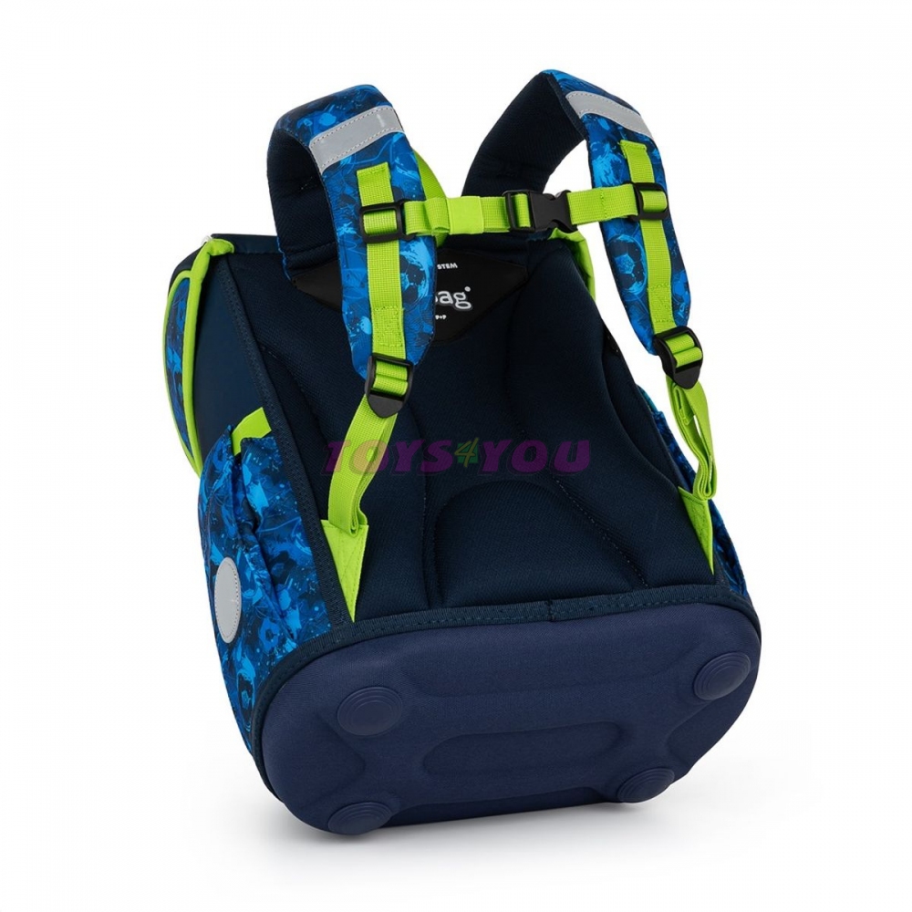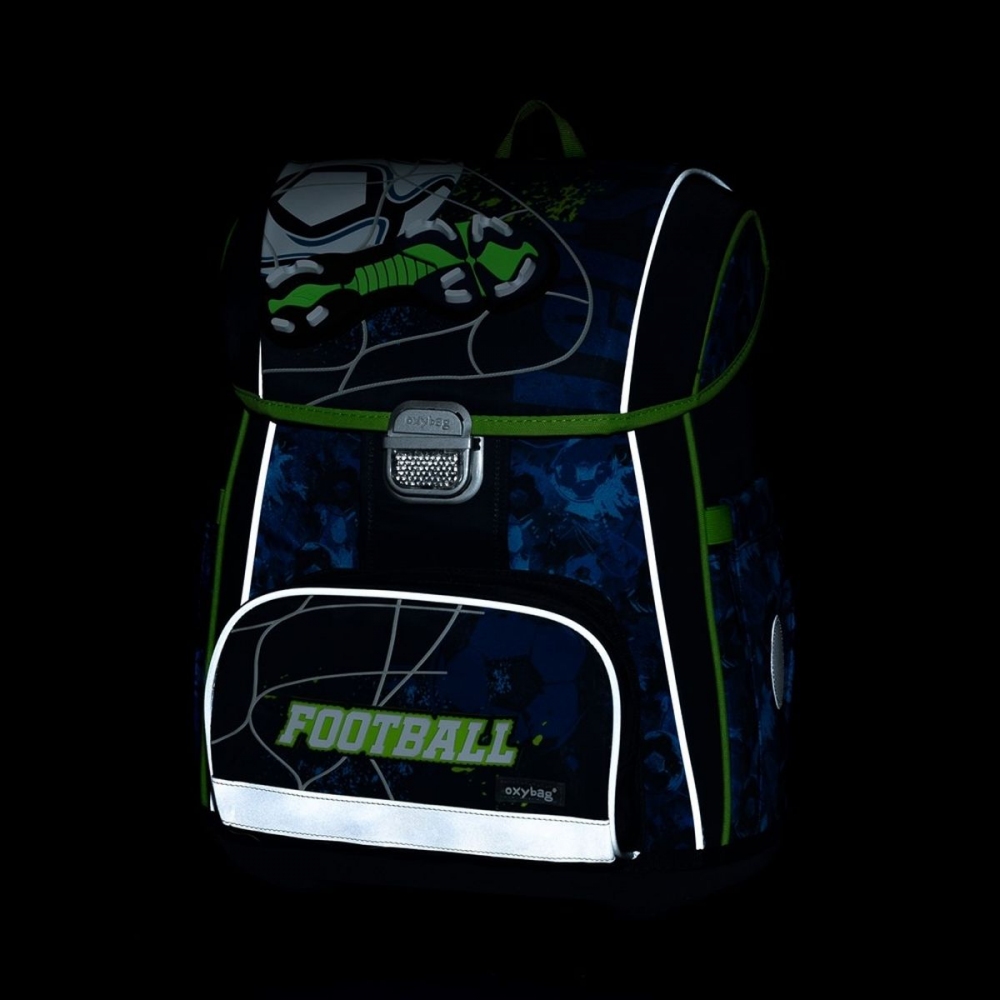 Aktovka: Školní aktovka z řady Premium je anatomicky tvarovaná a zajišťuje tak správné usazení na zádech. Vyztužená záda a vnitřní výztuha udržují stálý tvar batohu. Polstrování je z příjemného prodyšného materiálu, široké měkčené popruhy jsou navrženy tak, aby dokonale přilnuly a rovnoměrně zatížily ramena dítěte. Aktovka se skládá z jedné prostorné komory, kam se pohodlně vejdou všechny školní pomůcky pro děti v 1. a ve 2. třídě. Dno batohu je z pevného materiálu, chrání tím obsah před převržením a vysypáním. Zapínání je na bezpečnostní kovovou přezku s reflexní odrazkou. Přední kapsička je určena na svačinu, nechybí řada reflexních prvků, díky kterým je aktovka viditelnější. Délka zádového panelu: 33 cm. Objem: 27 l. Nosnost: 8 kg. Sáček: Praktický sáček na cvičky nebo přezůvky do školy. Uzavírá se snadno stažením šňůrek. Penál: Jednopatrový školní penál se dvěma chlopněmi bez náplně. Gumová poutka k uchycení psacích potřeb. Na vnitřní chlopni je průhledná fólie na rozvrh hodin.