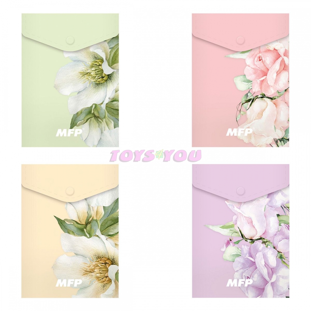 Složka z PolyPropylenu (PP), která se zavírá pomocí druku, ve formátu A6, s květinovým motivem. Složka slouží jako pomocník pro třídění a ukládání dokumentů, takže je budete mít vždy pohromadě. MATERIÁL: PP POTISK: květy SÍLA MATERIÁLU: 0,21 mm BARVA: zelená, růžová, béžová, fialová Dodáváme v mixu dle skladové zásoby. Uvedená cena je za 1 ks.